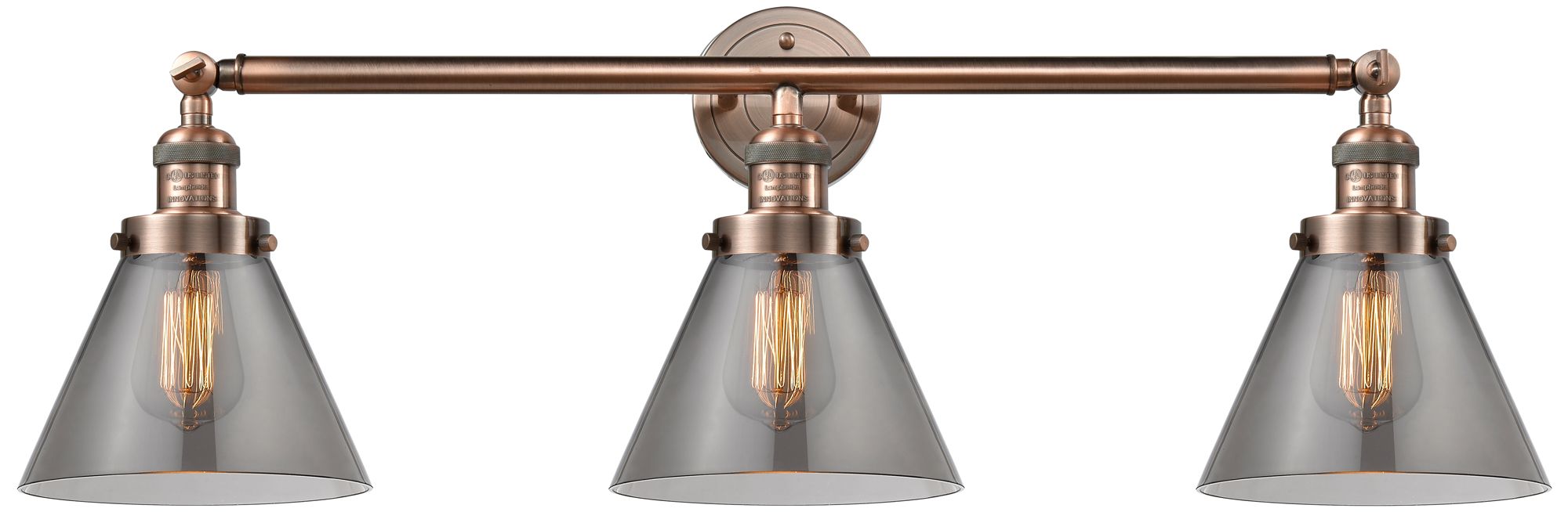 Cone 3 Light 32" LED Bath Light - Antique Copper - Plated Smoke Shade