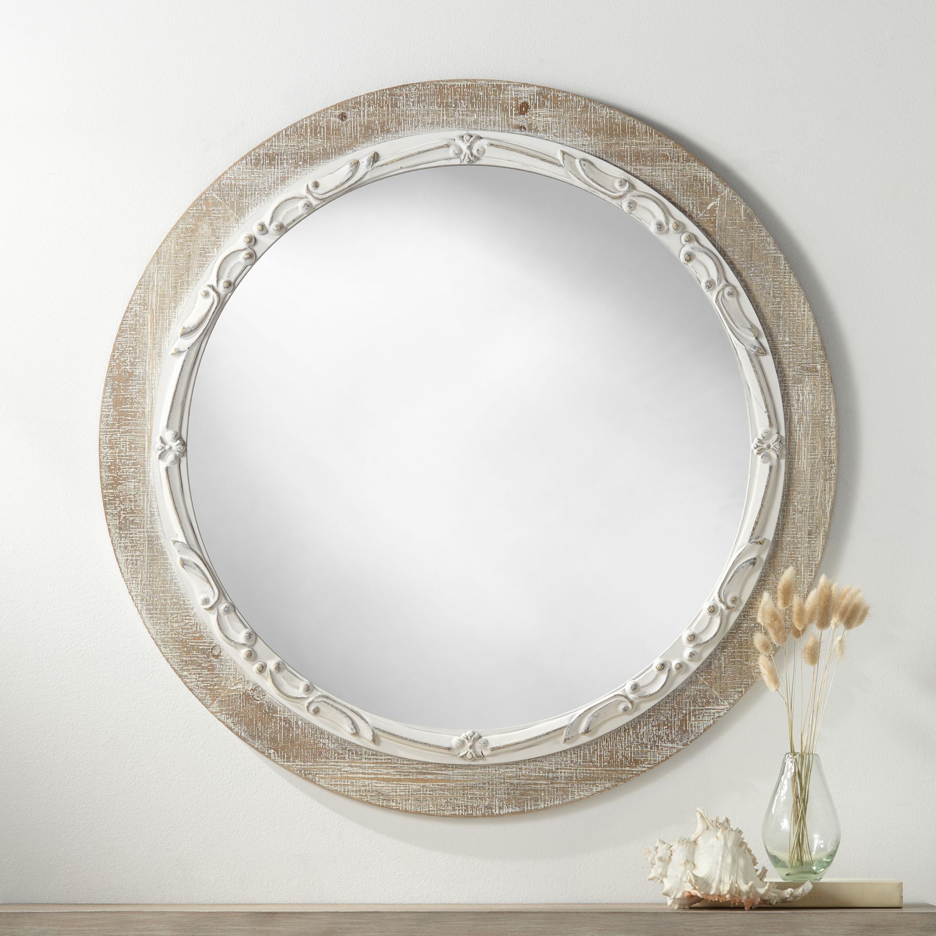 Cornwall Gray and White-Washed 32 3/4" Round Wall Mirror