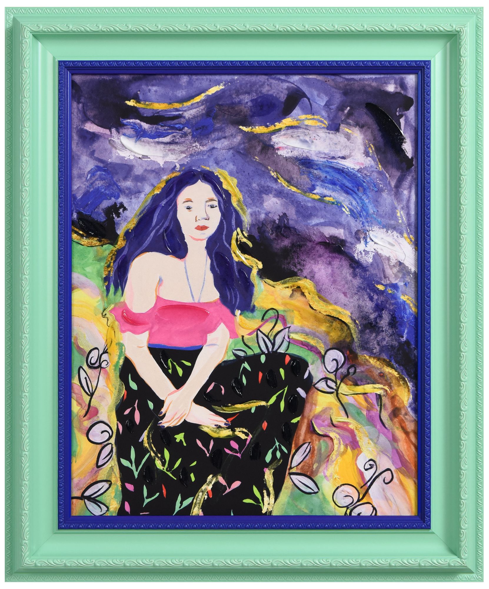 Night Galaxy" Hand Embellished Framed Giclee Printed Canvas Wall Art
