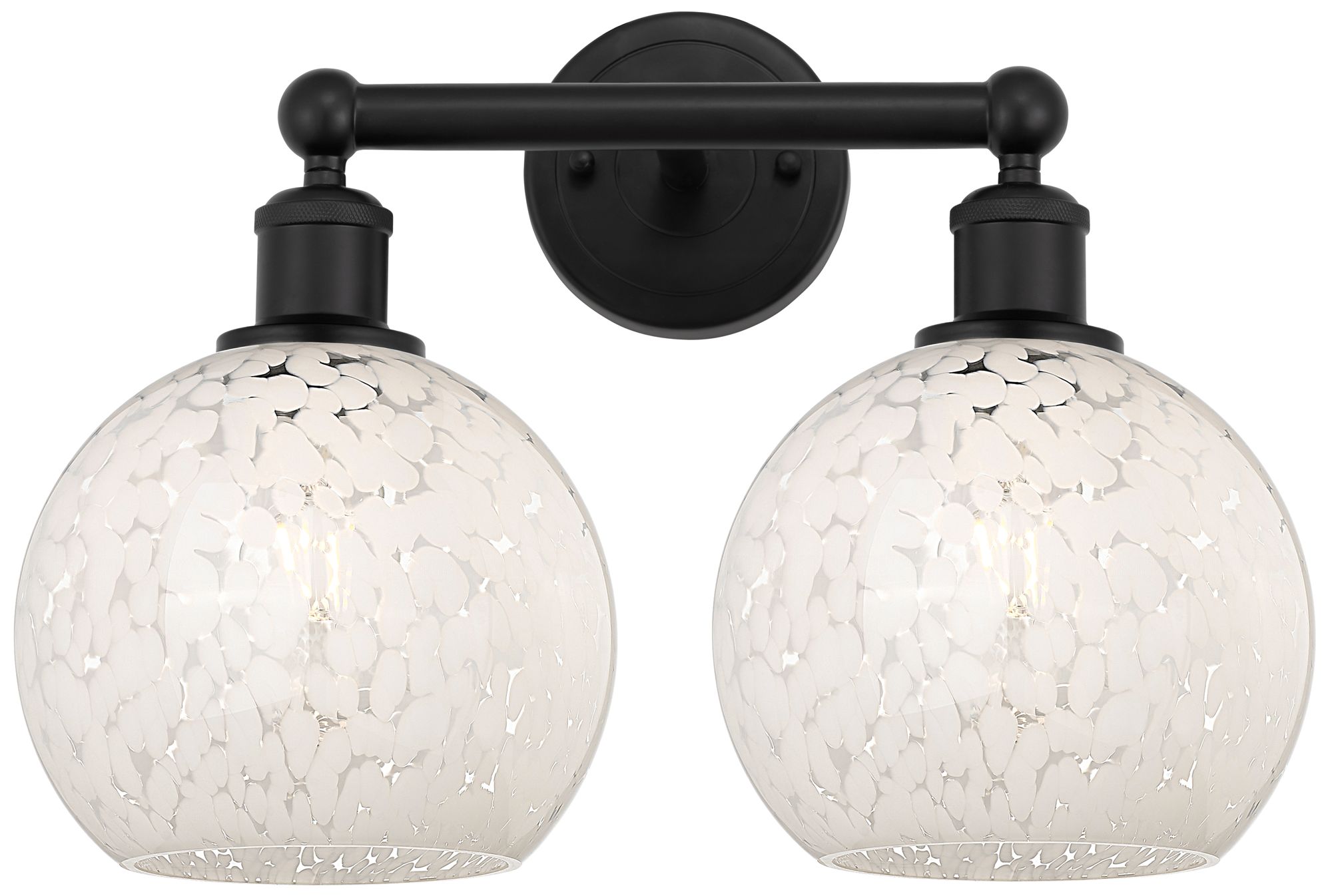 Edison 17" Wide 2 Light Matte Black Bath Light With White Mouchette Sh