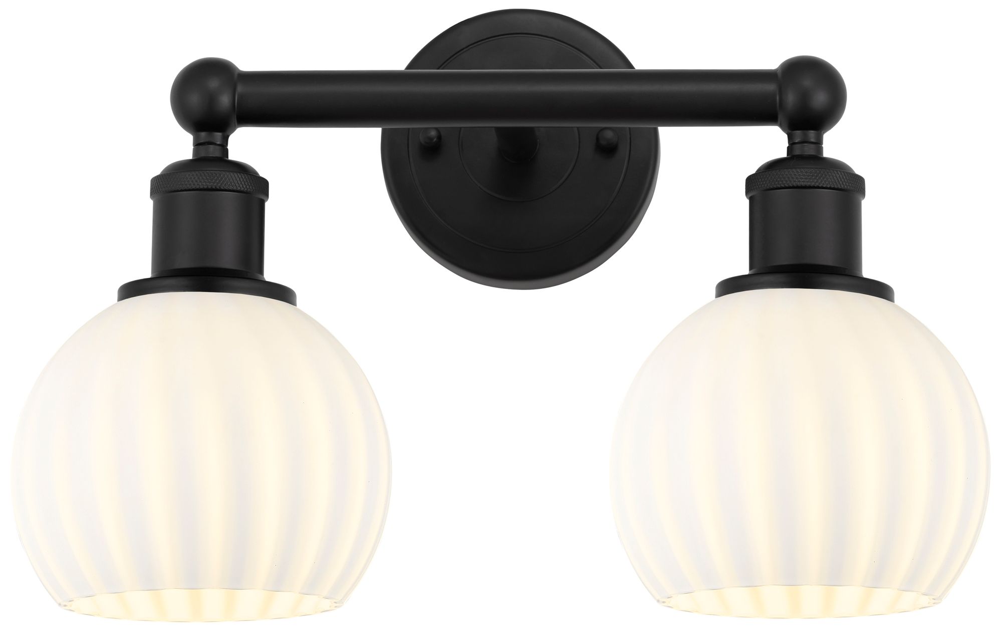 Edison 15" Wide 2 Light Matte Black Bath Light With White Venetian Sha