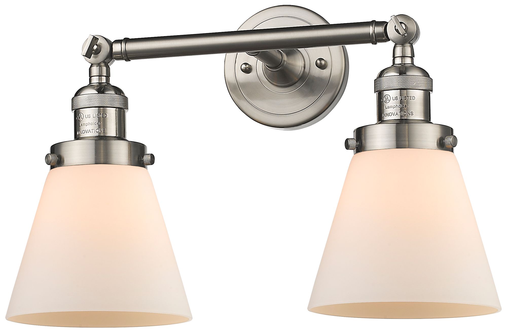 Small Cone 16" 2-Light Brushed Nickel Tiltable Bath Light w/ White Sha
