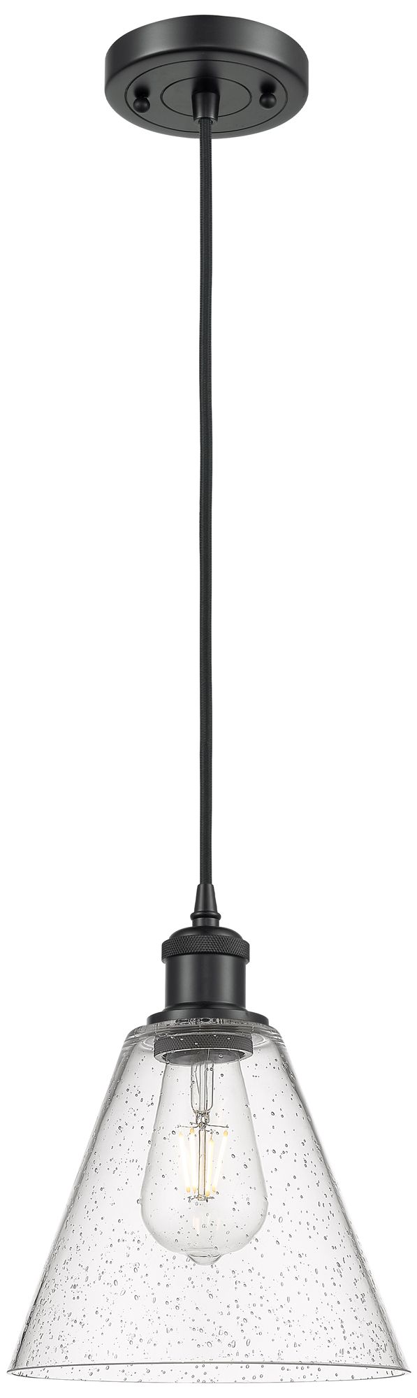 Ballston Berkshire 8" LED Mini Pendant - Matte Black - Seedy Shade