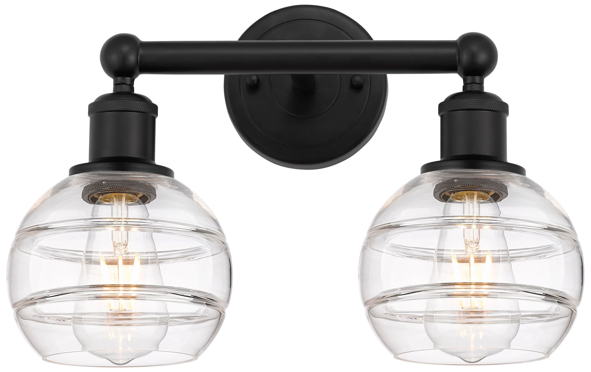 Edison Rochester 14.88" Wide 2 Light Matte Black Bath Light w/ Clear S