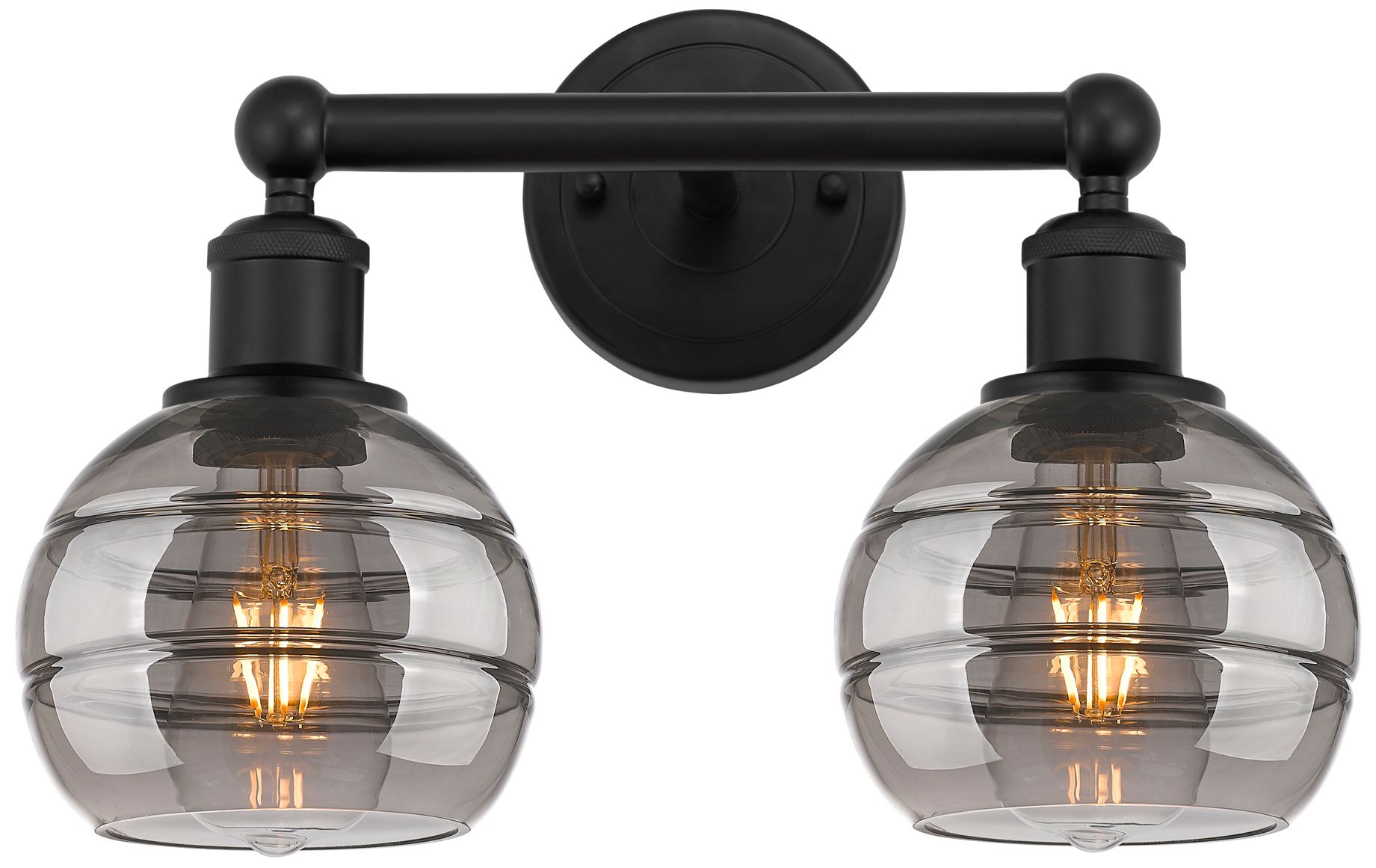 Edison Rochester 14.88"W 2 Light Matte Black Bath Light w/ Smoke Shade