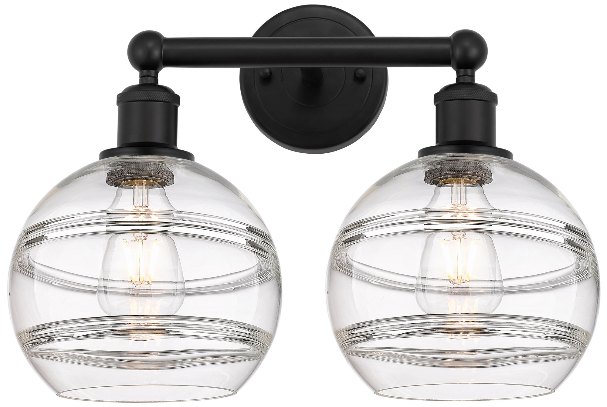 Edison Rochester 17" Wide 2 Light Matte Black Bath Light With Clear Sh