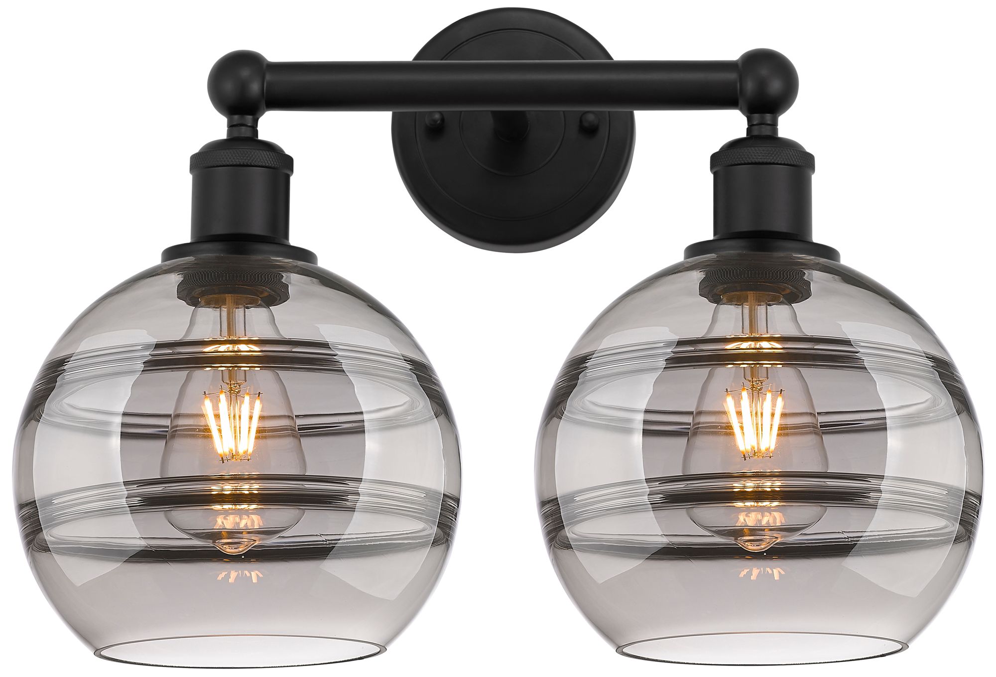 Edison Rochester 17"W 2 Light Matte Black Bath Light w/ Light Smoke Sh