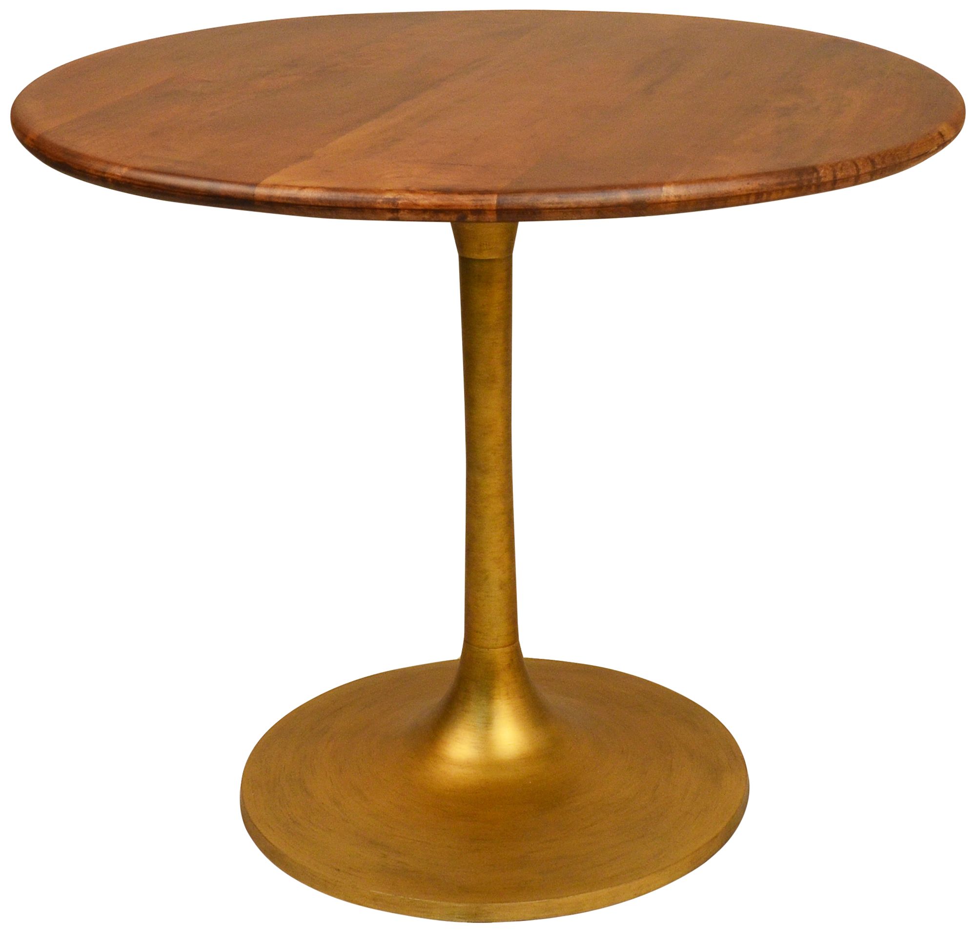 Waverly 36"W Elm Wood Antique Gold Metal Round Dining Table