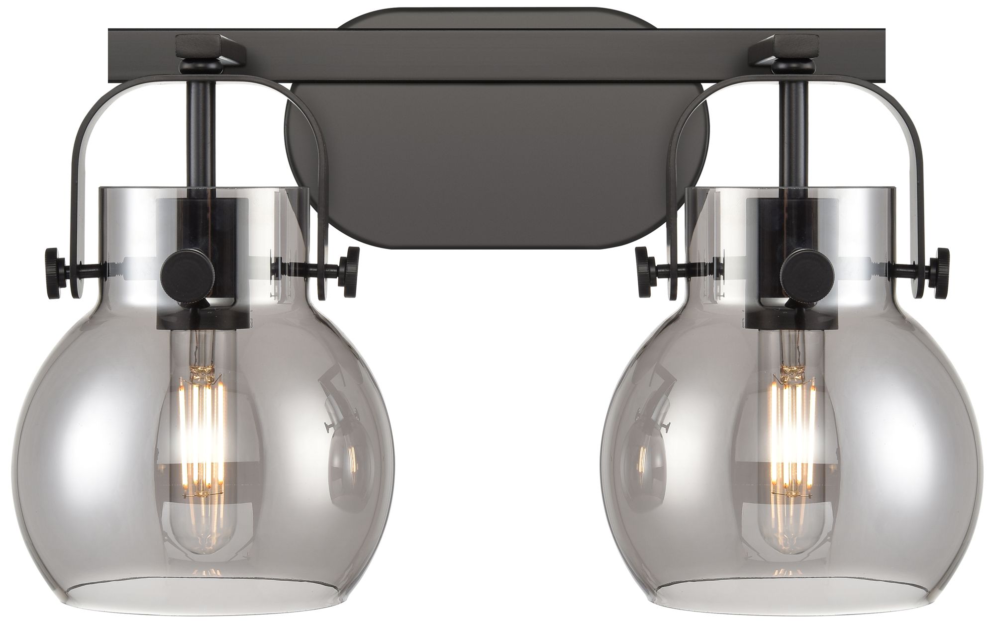 Pilaster II Sphere 17" Wide 2 Light Matte Black Bath Light With Smoke
