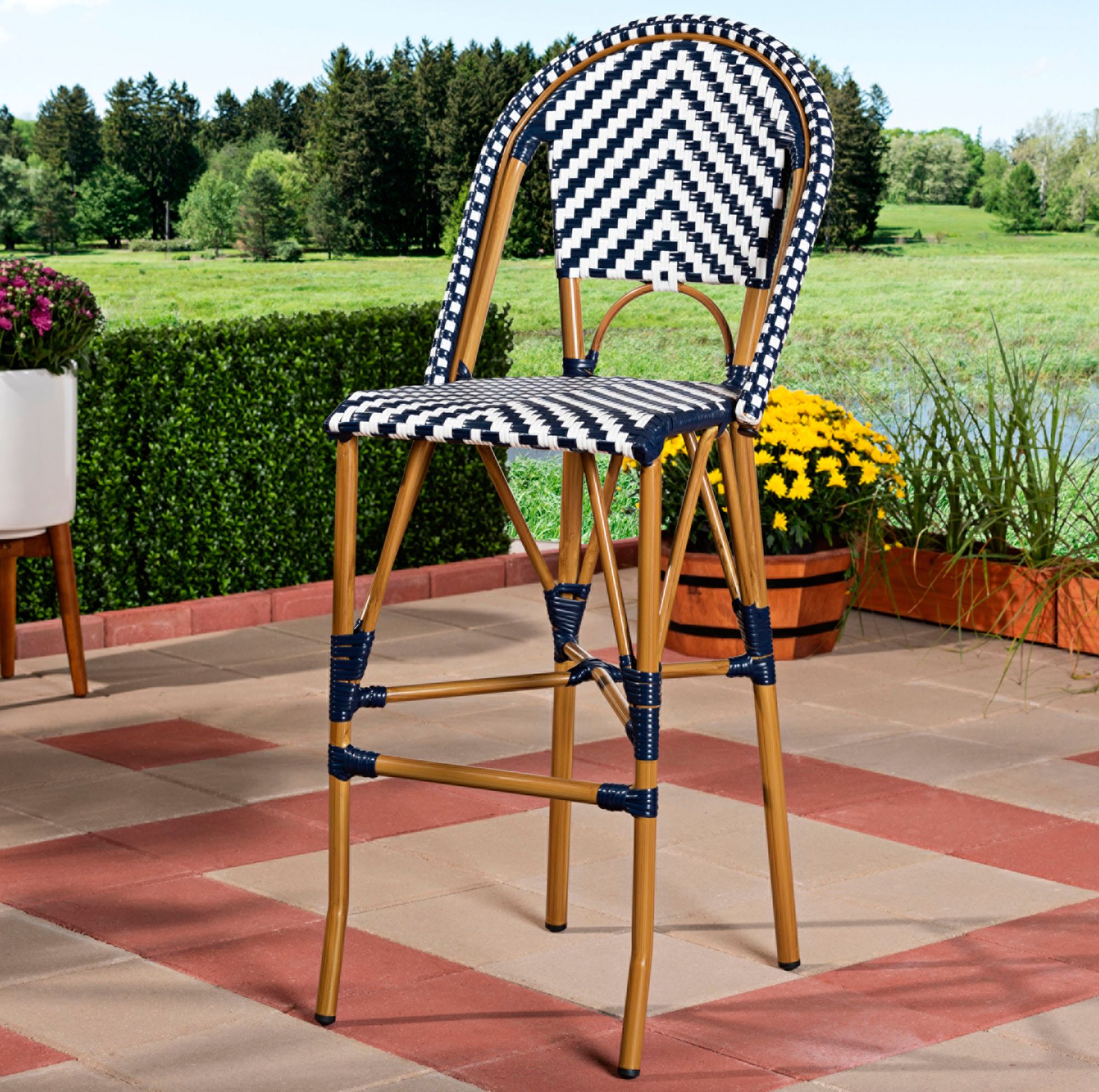 Ilene 29 1/2"H White-Blue Wicker Indoor-Outdoor Bar Stool