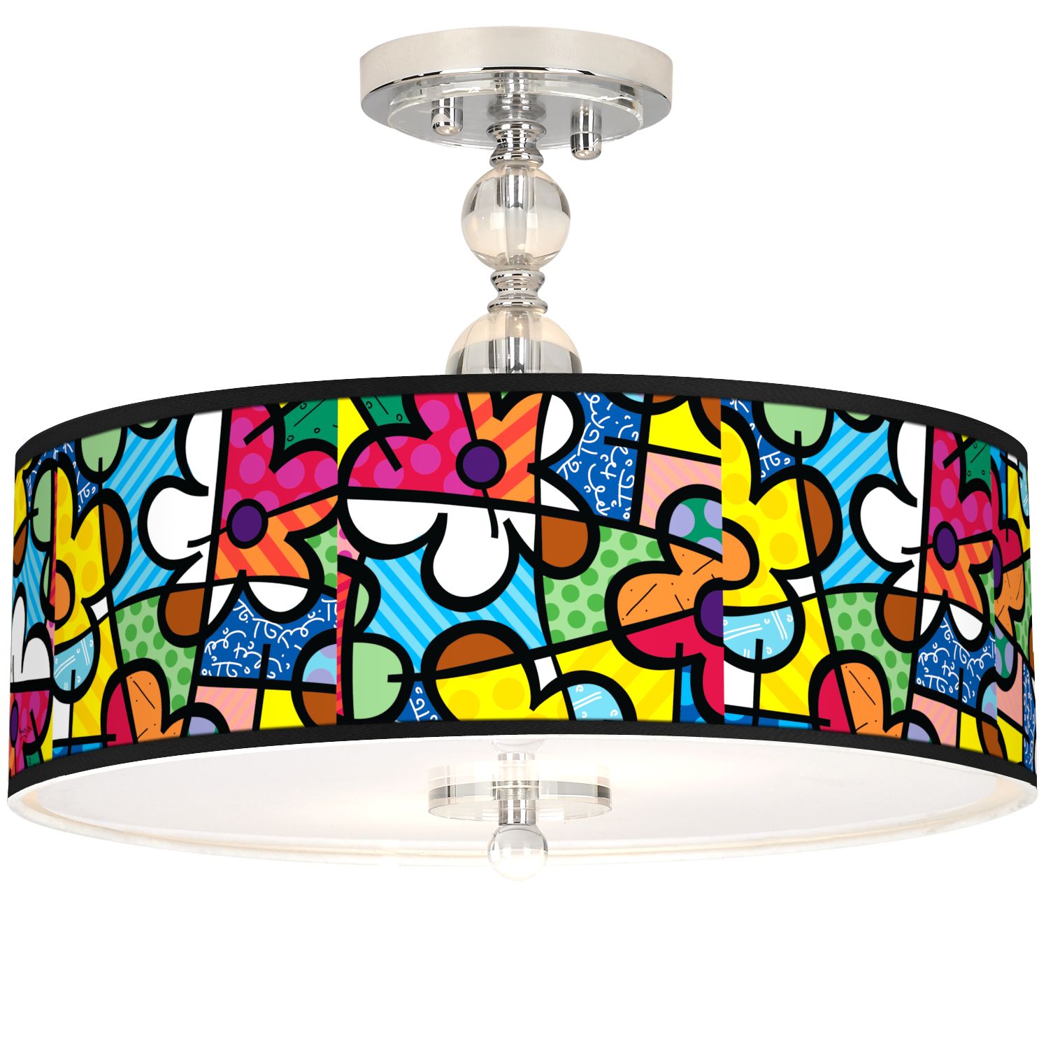 Romero Britto Flowers Giclee 16" Wide Semi-Flush Ceiling Light