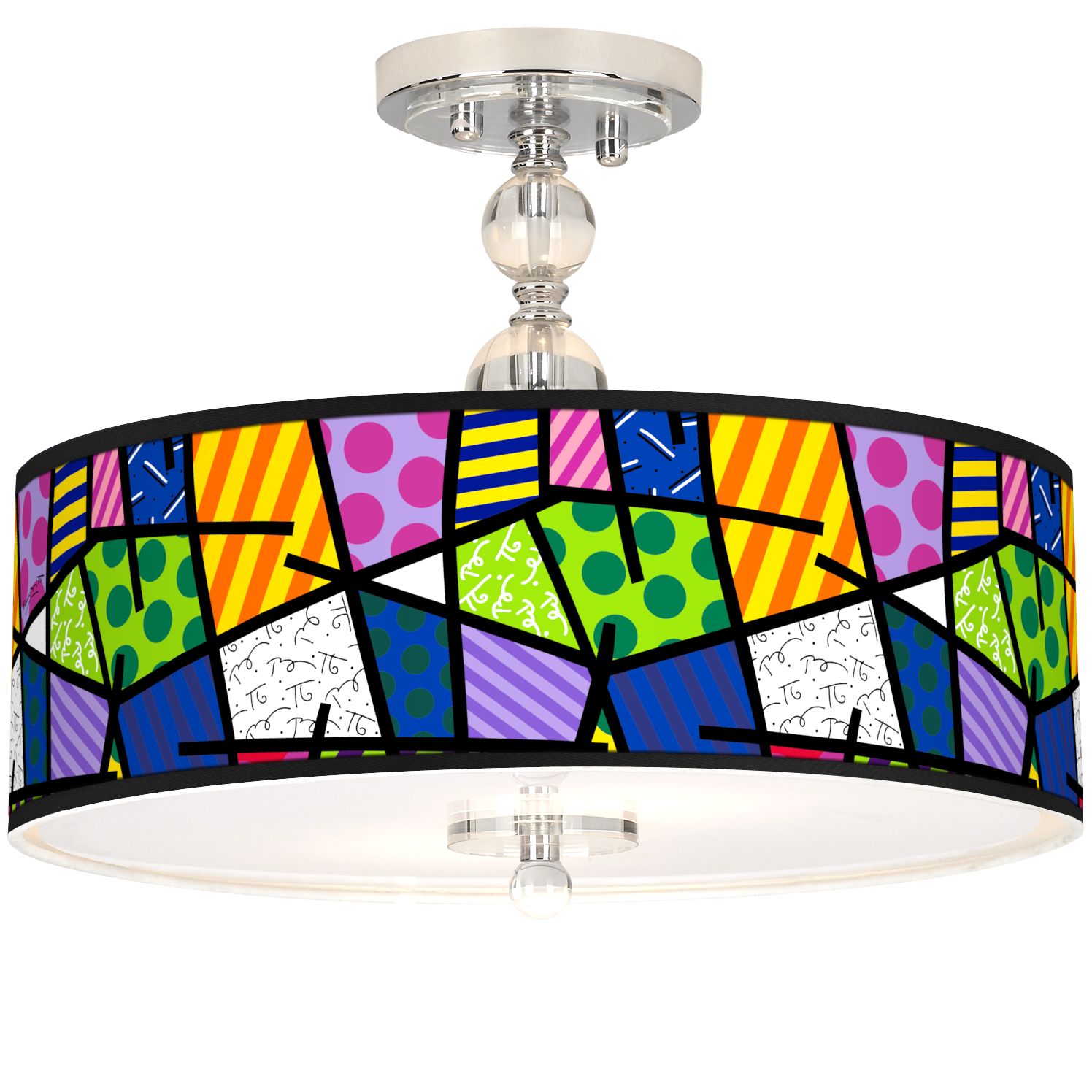 Romero Britto Abstract Giclee 16" Wide Semi-Flush Ceiling Light