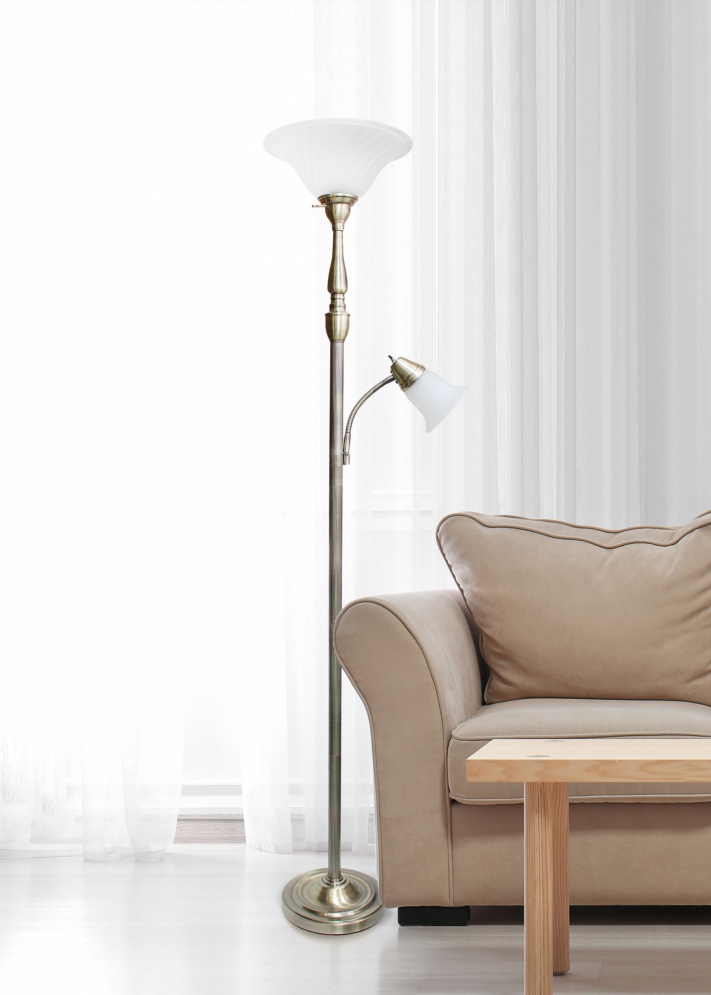 Lalia Home 71" Antique Brass Metal 2-Light Torchiere Floor Lamp