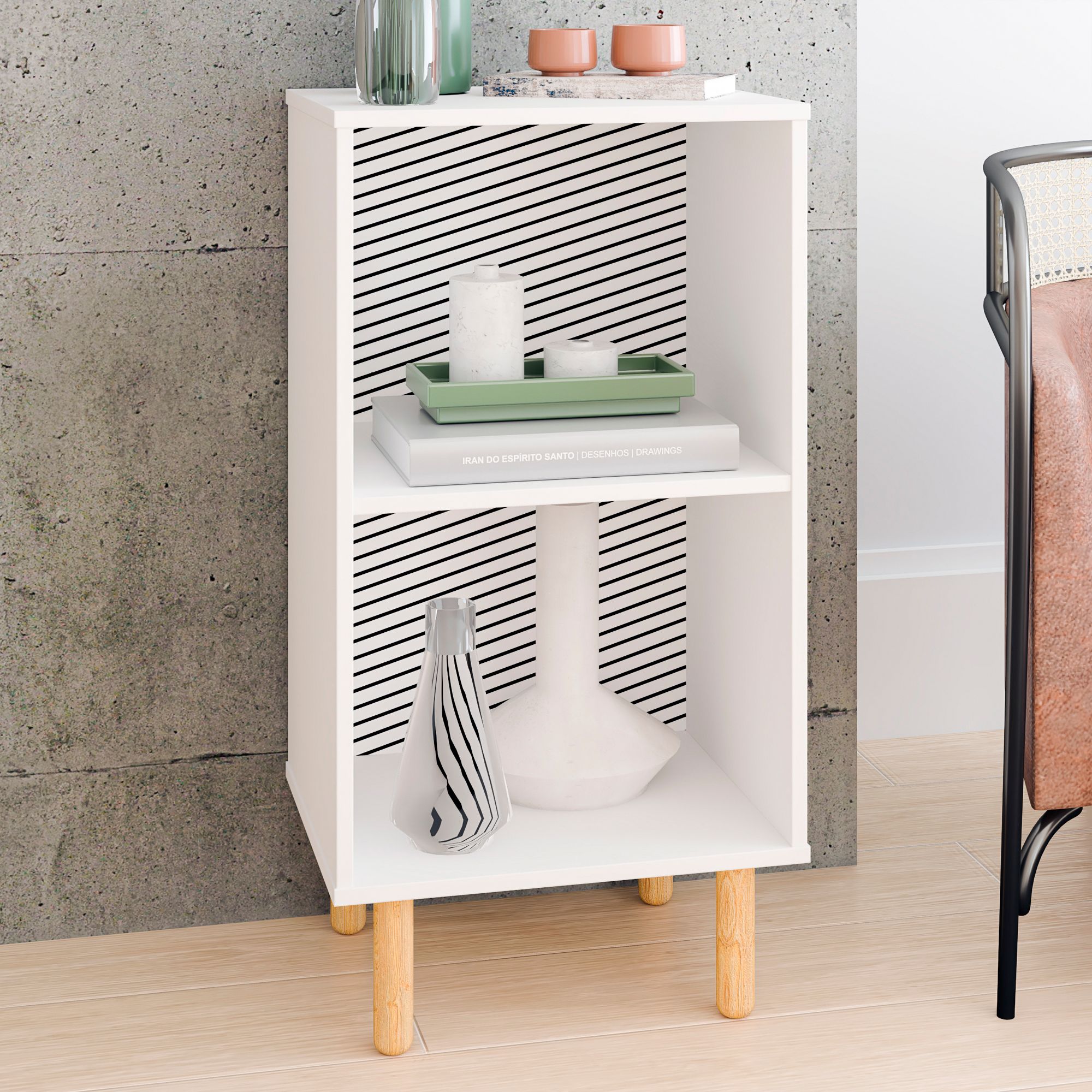 Essex 17 1/2" Wide White and Zebra Wood 2-Shelf Nightstand