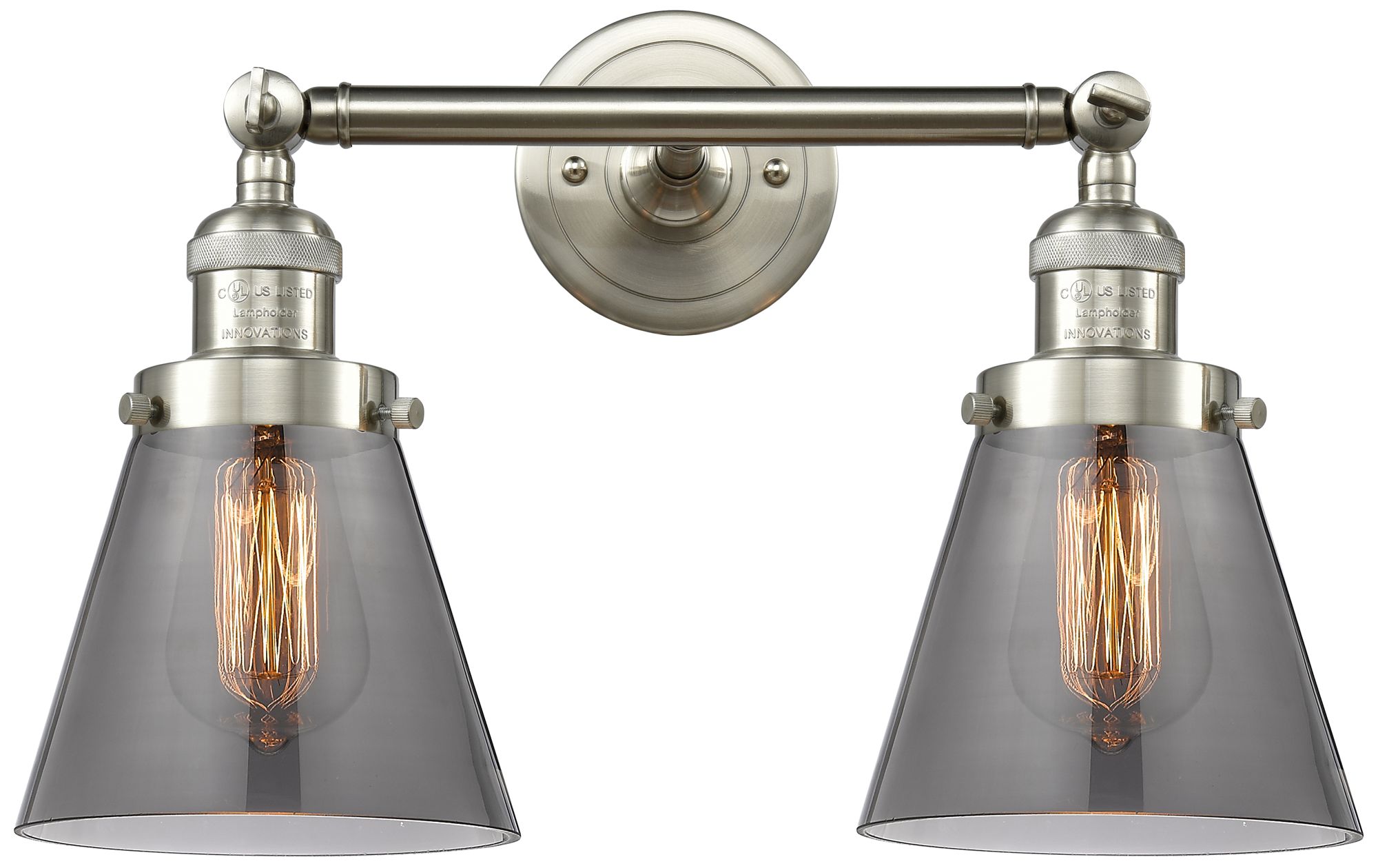 Small Cone 16" 2-Light Brushed Nickel Tiltable Bath Light w/ Smoke Sha