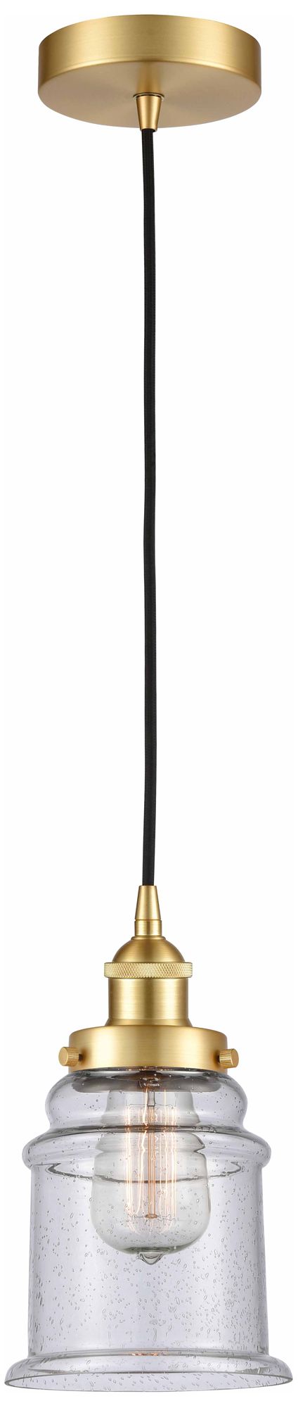 Canton 6" Satin Gold Mini Pendant w/ Seedy Shade