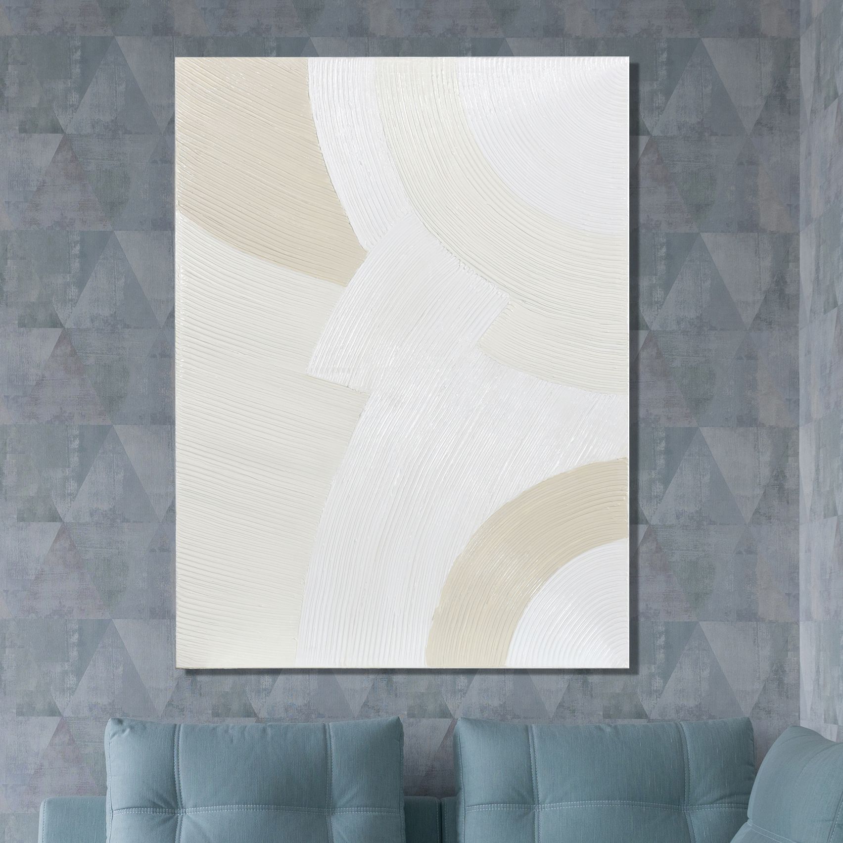 Monochrome Arches I 35.4"W x 47.24"H Hand Painted Abstract Canvas