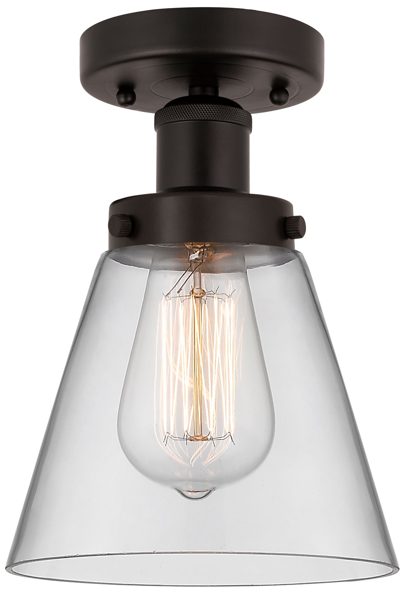 Edison Cone 7" Oil Rubbed Bronze Semi Flush Mount w/ Clear Shade