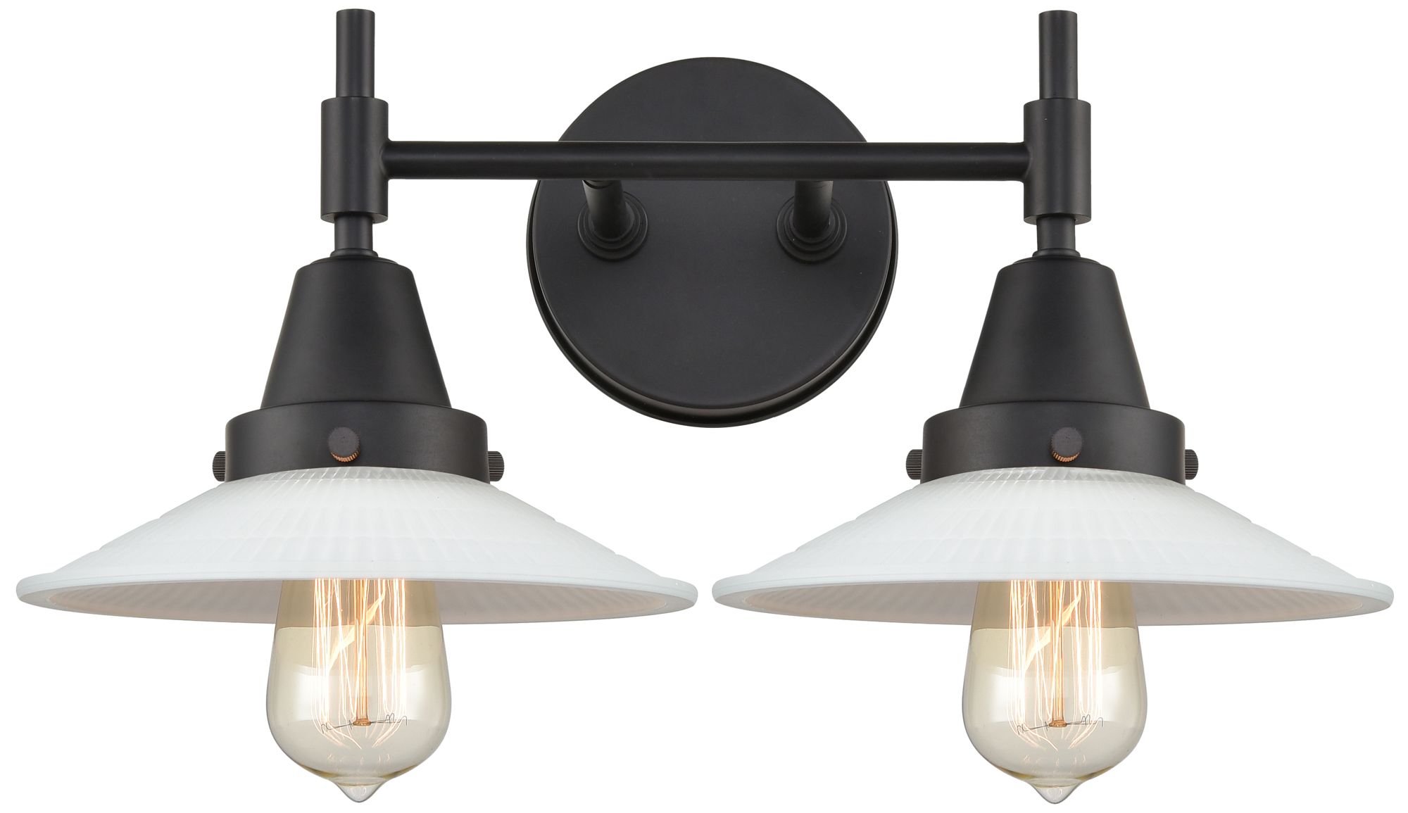 Caden Halophane 18"W 2 Light Matte Black Bath Light White Halophane Sh