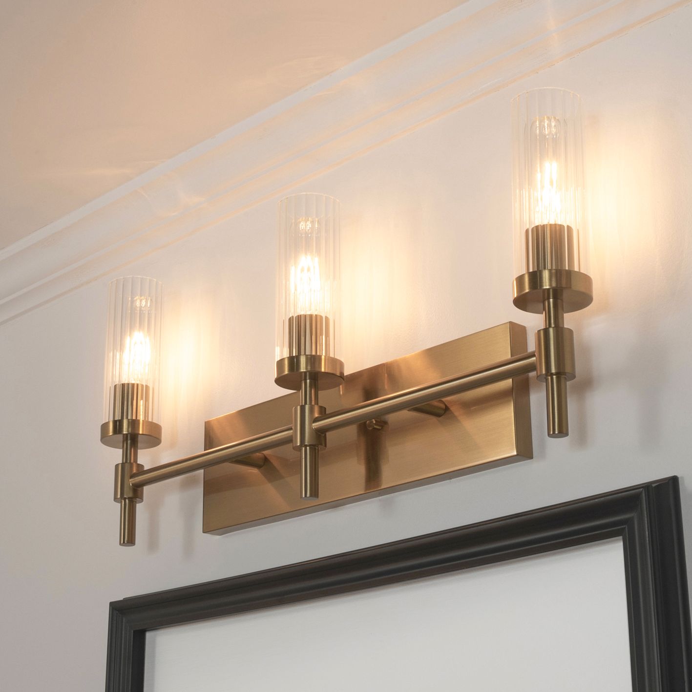 Huntington 24" Wide Light Antique Brass Vanity With Ribbed Glass Shade