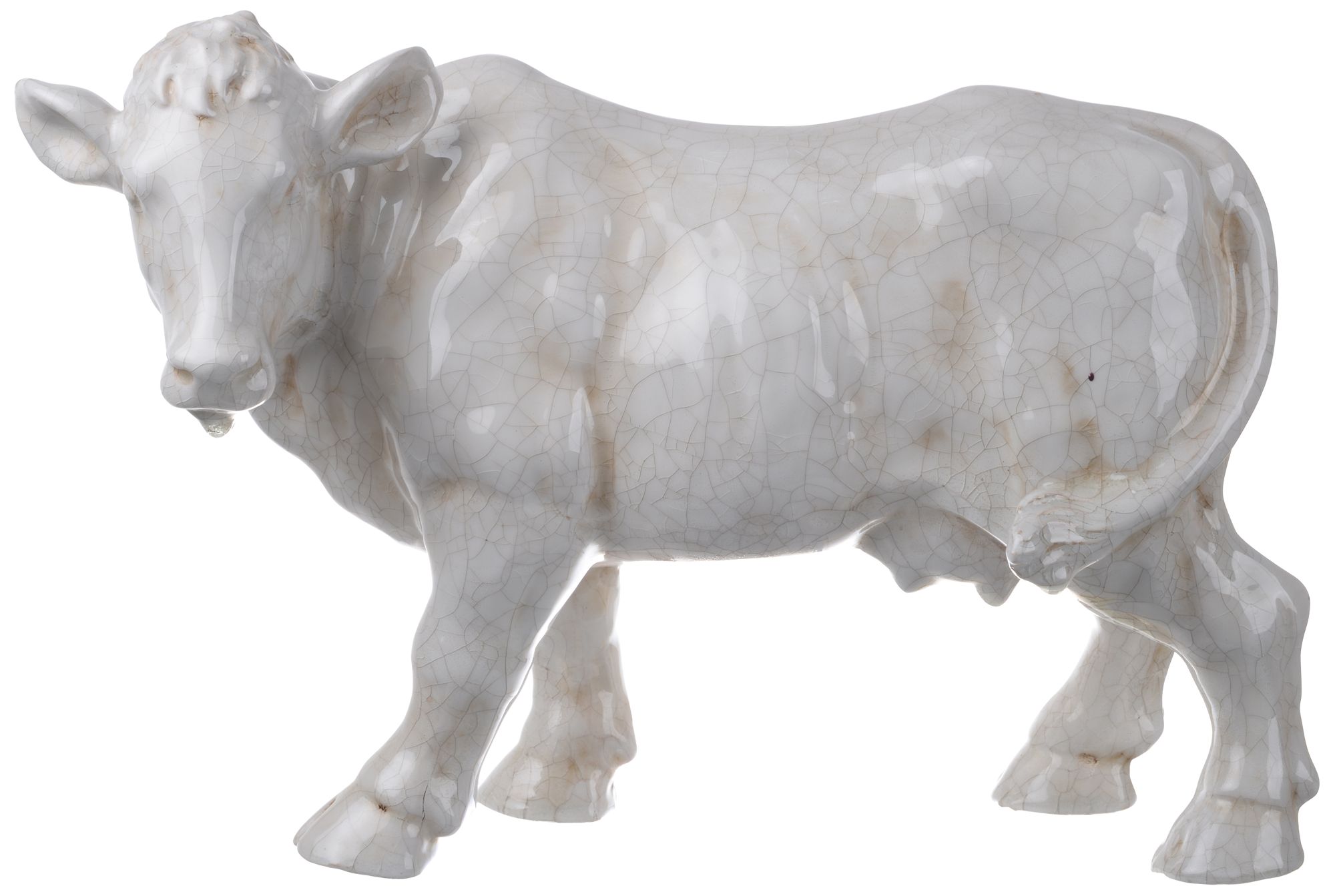 Hector 11.5" Crackled White Cow Statuette