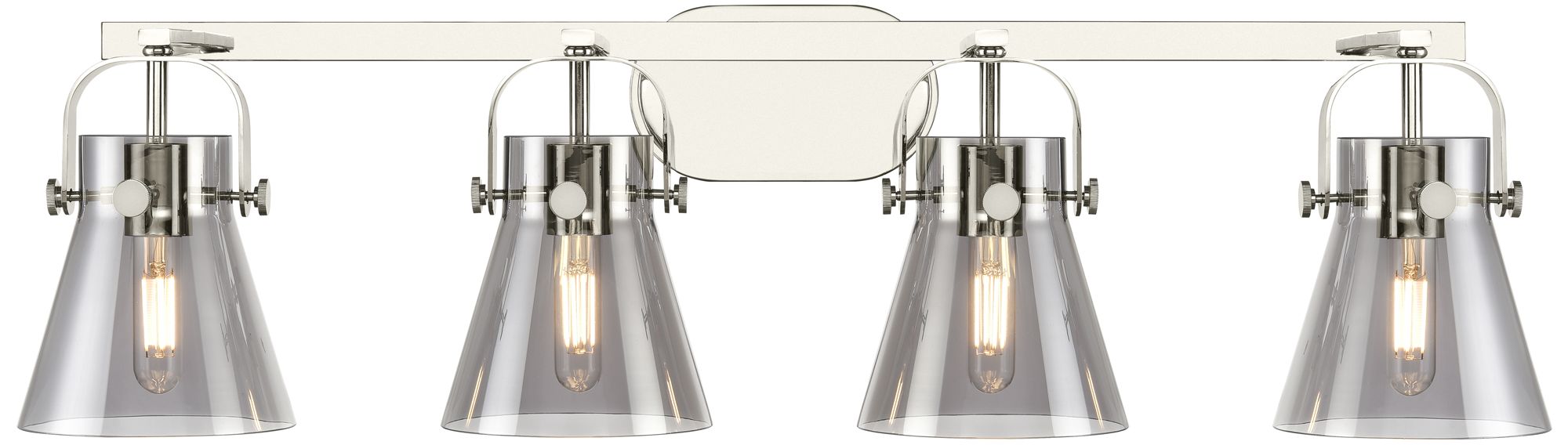 Pilaster II Cone 36.5"W 4 Light Polished Nickel Bath Light w/ Smoke Sh
