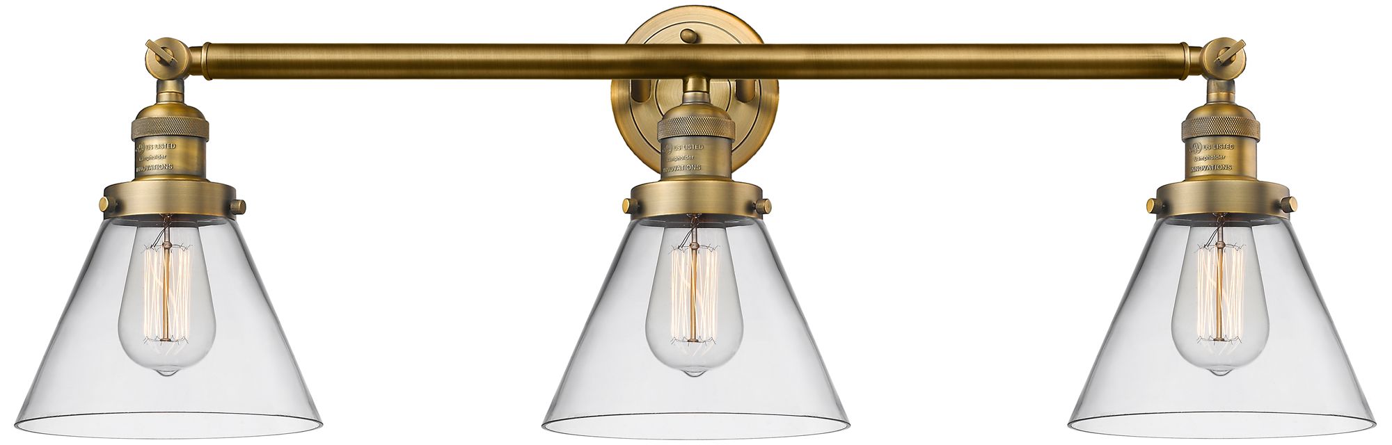 Cone 3 Light 32" LED Bath Light - Brushed Brass - Clear Shade