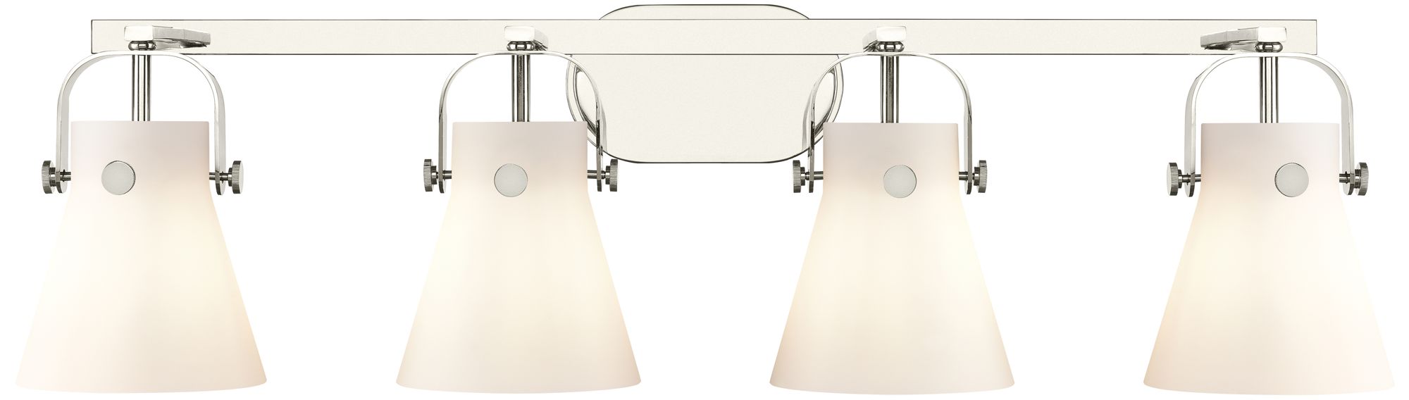 Pilaster II Cone 36.5"W 4 Light Polished Nickel Bath Light w/ White Sh