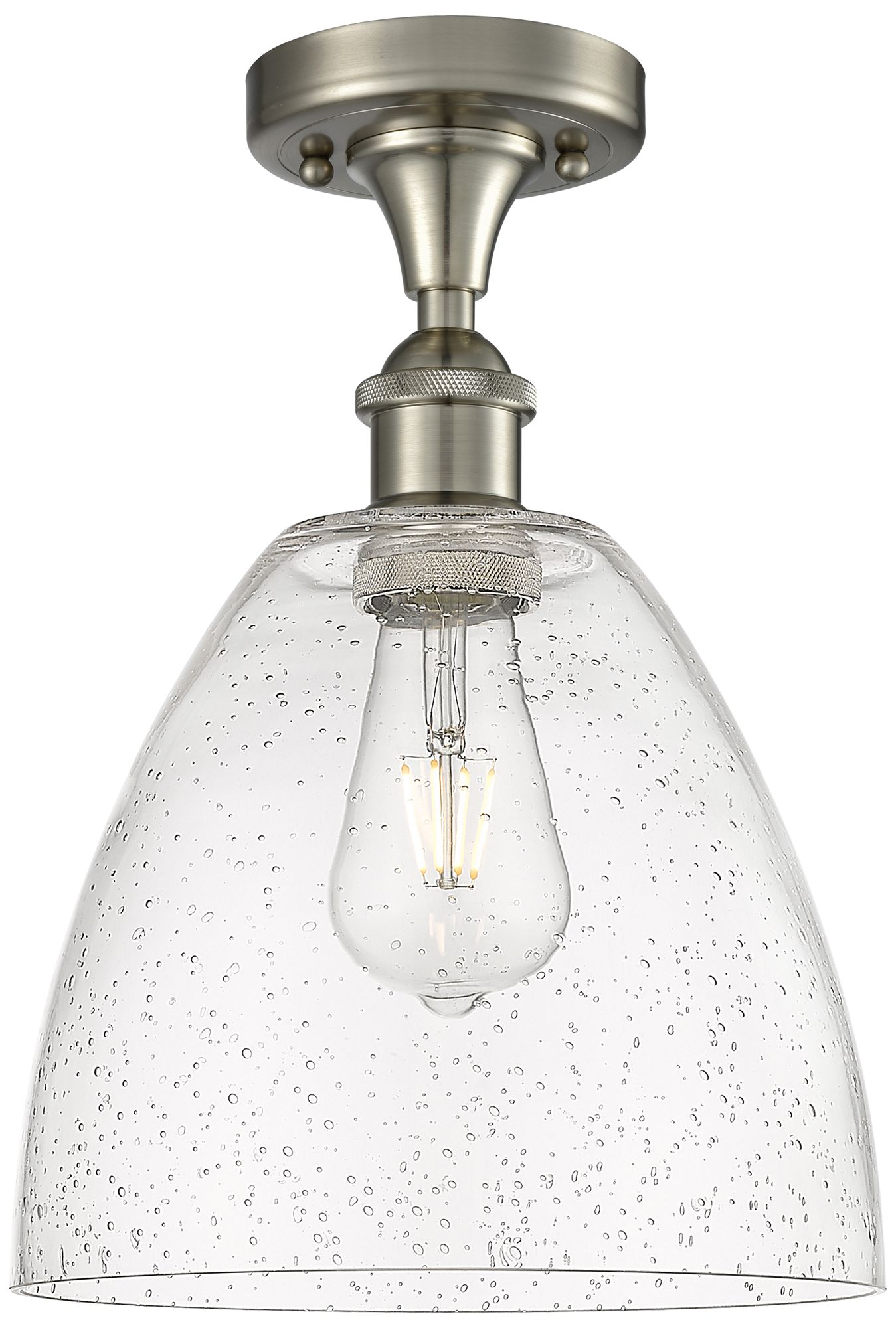 Bristol Glass 9" Semi-Flush Mount - Brushed Satin Nickel - Seedy Shade