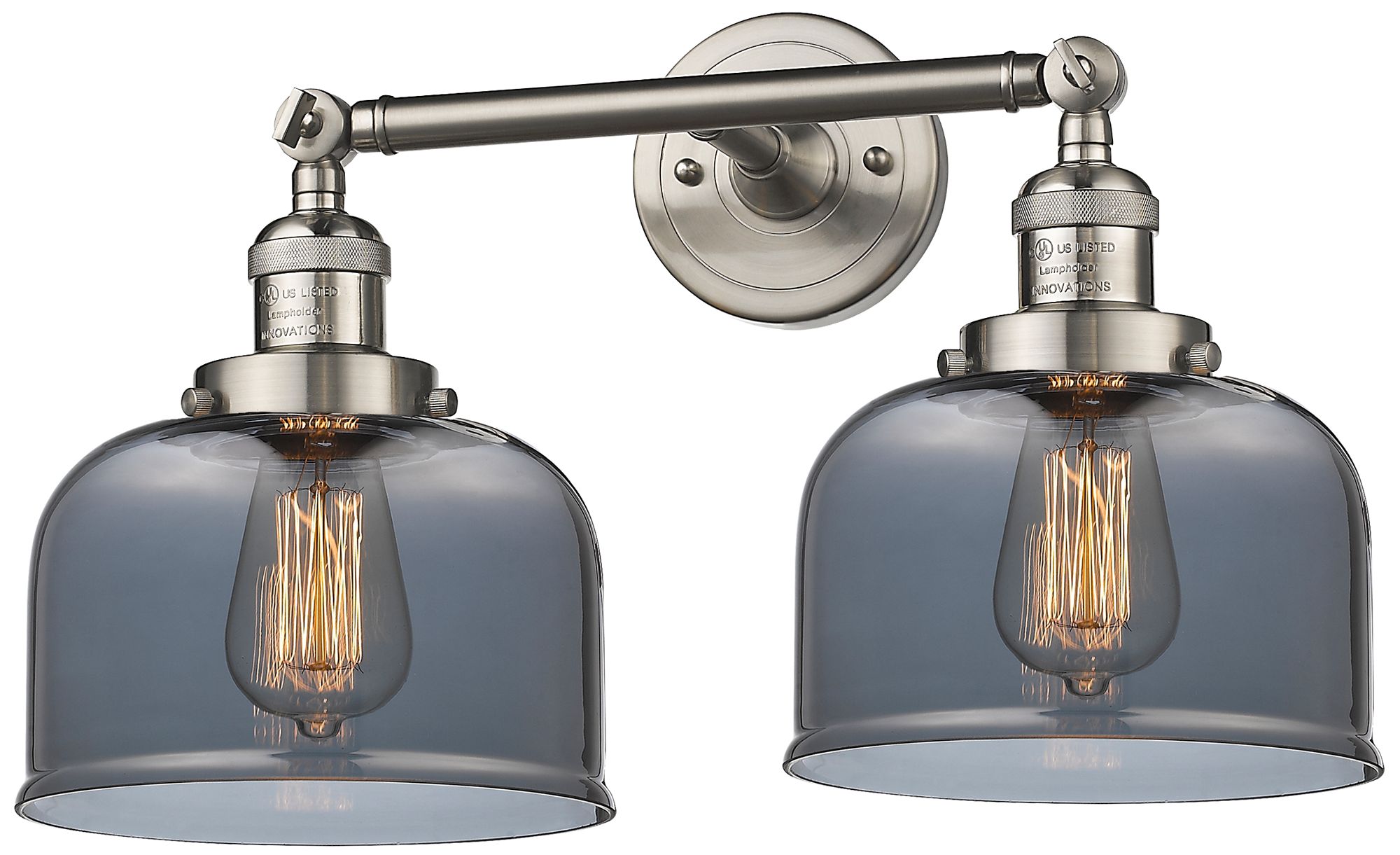 Bell 19" 2-Light Brushed Satin Nickel Bath Light w/ Plated Smoke Shade