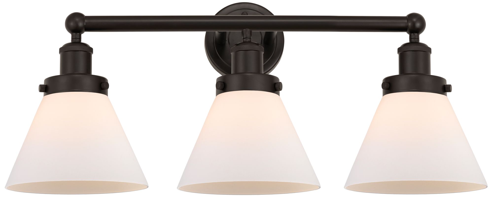 Edison Large Cone 25" 3-Light Oil Rubbed Bronze Bath Light w/ White Sh