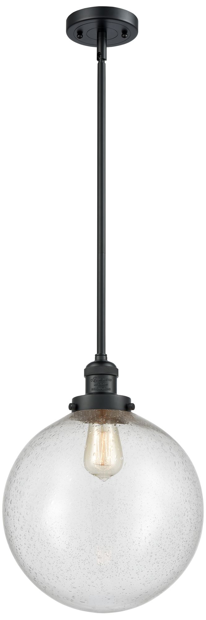 Franklin Beacon 12" Matte Black Stemmed Mini Pendant w/ Seedy Shade