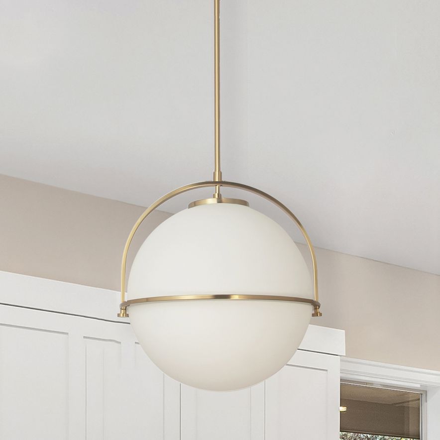 Dainolite Paola 11 1/2" Wide Aged Brass White Opal Glass Globe Pendant
