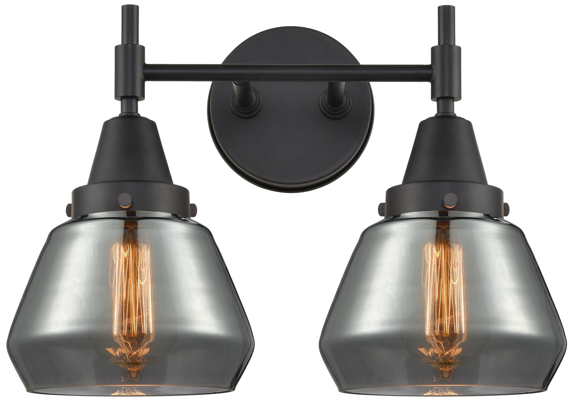 Caden Fulton 15.75"W 2 Light Matte Black Bath Light w/ Smoke Shade