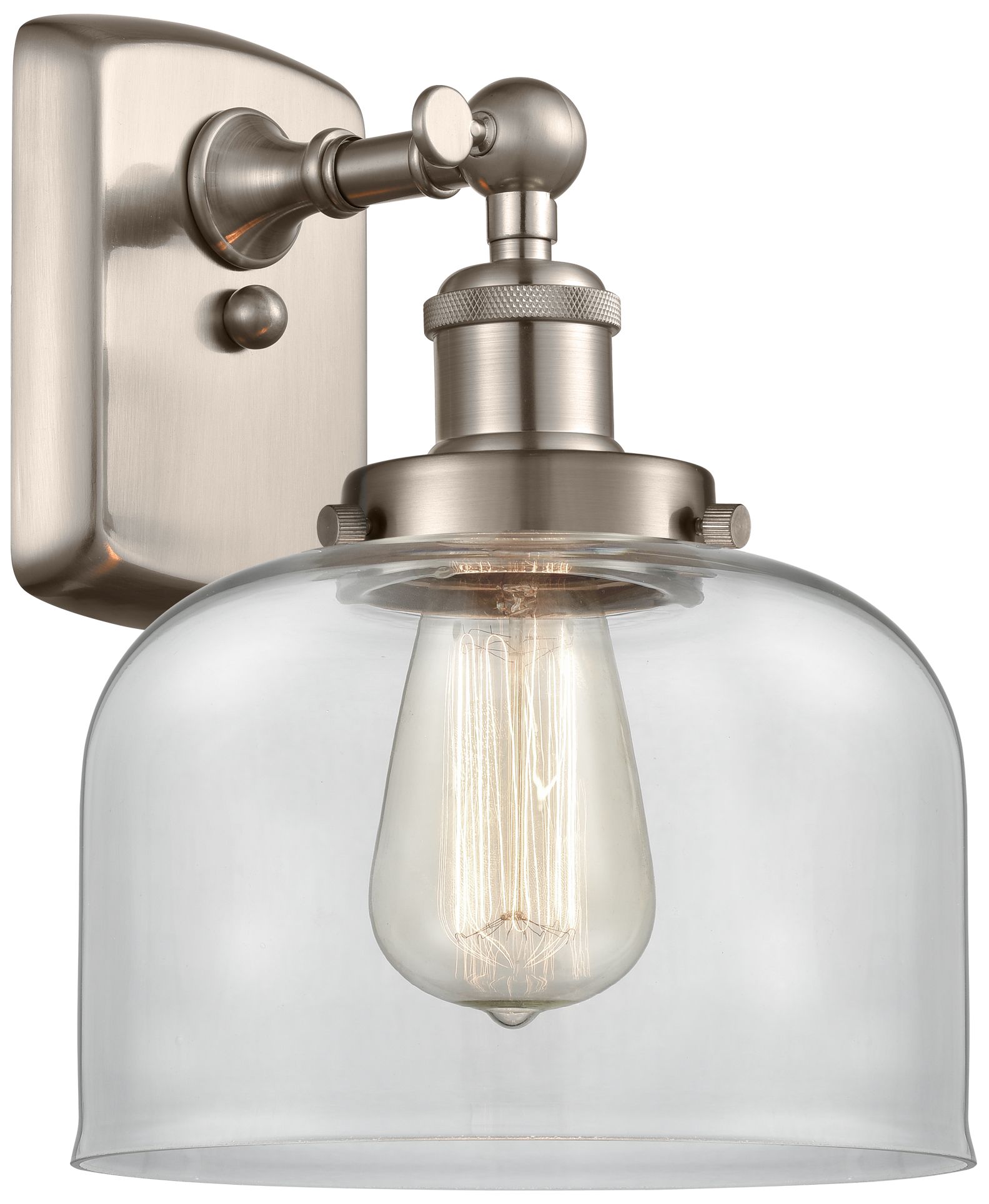 Ballston Urban Bell 13" High Brushed Satin Nickel Sconce w/ Clear Shad
