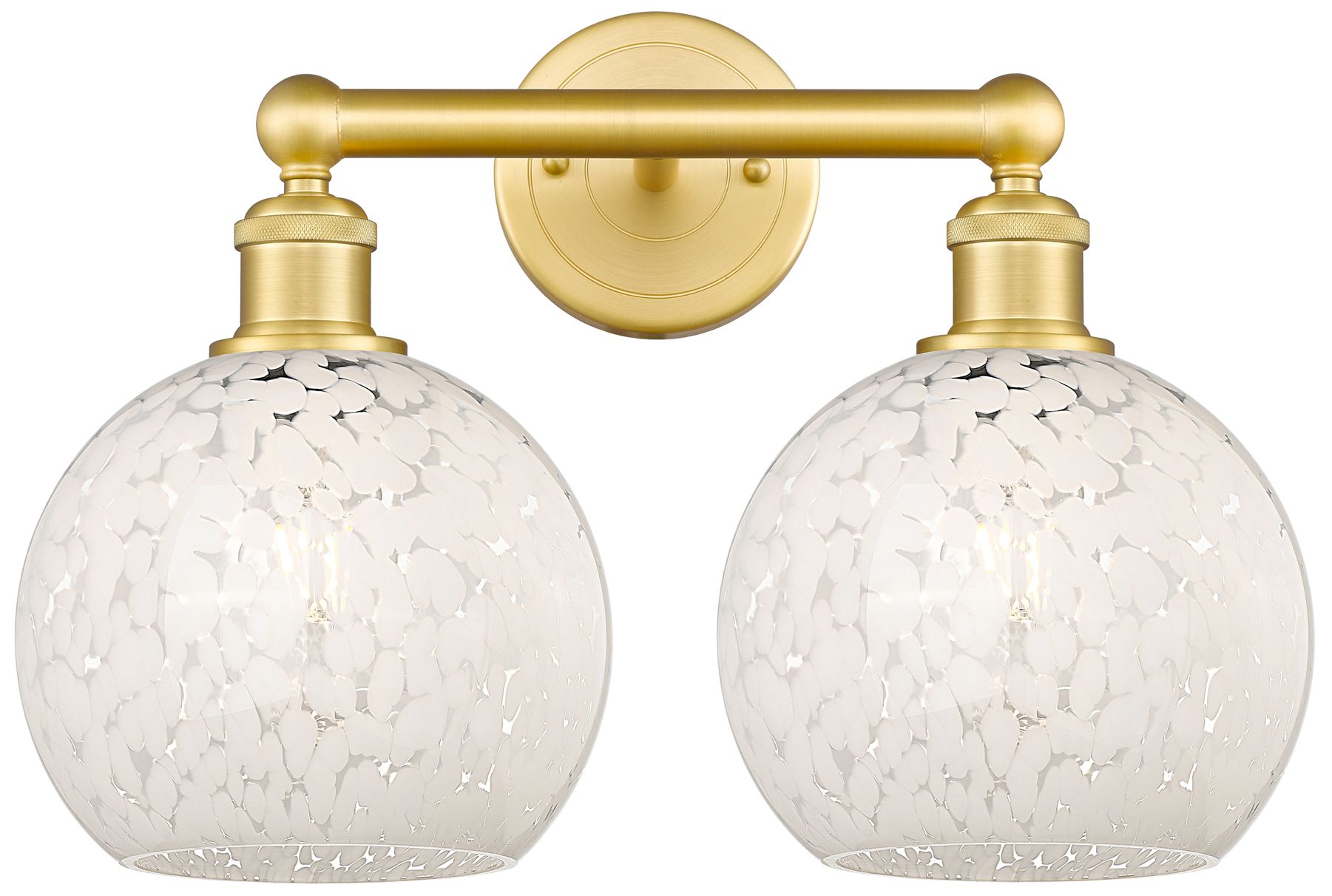 Edison 17" Wide 2 Light Satin Gold Bath Light With White Mouchette Sha