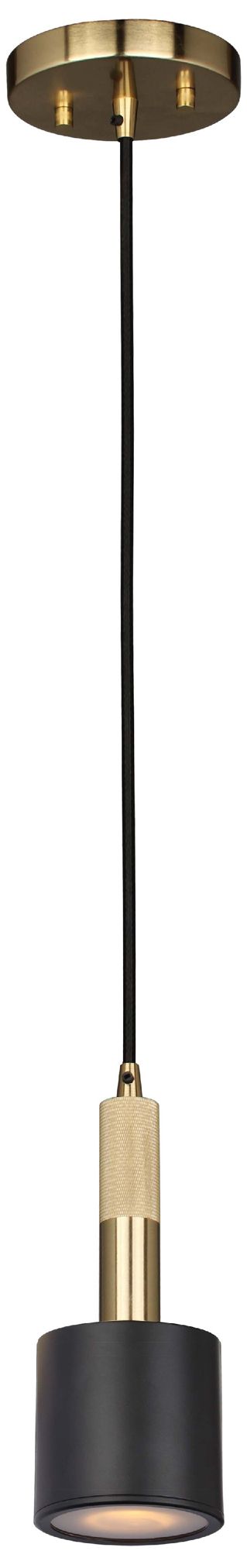 Rhoswen 3.5"W Matte Black And Aged Brass Pendant With Frosted Diffuser