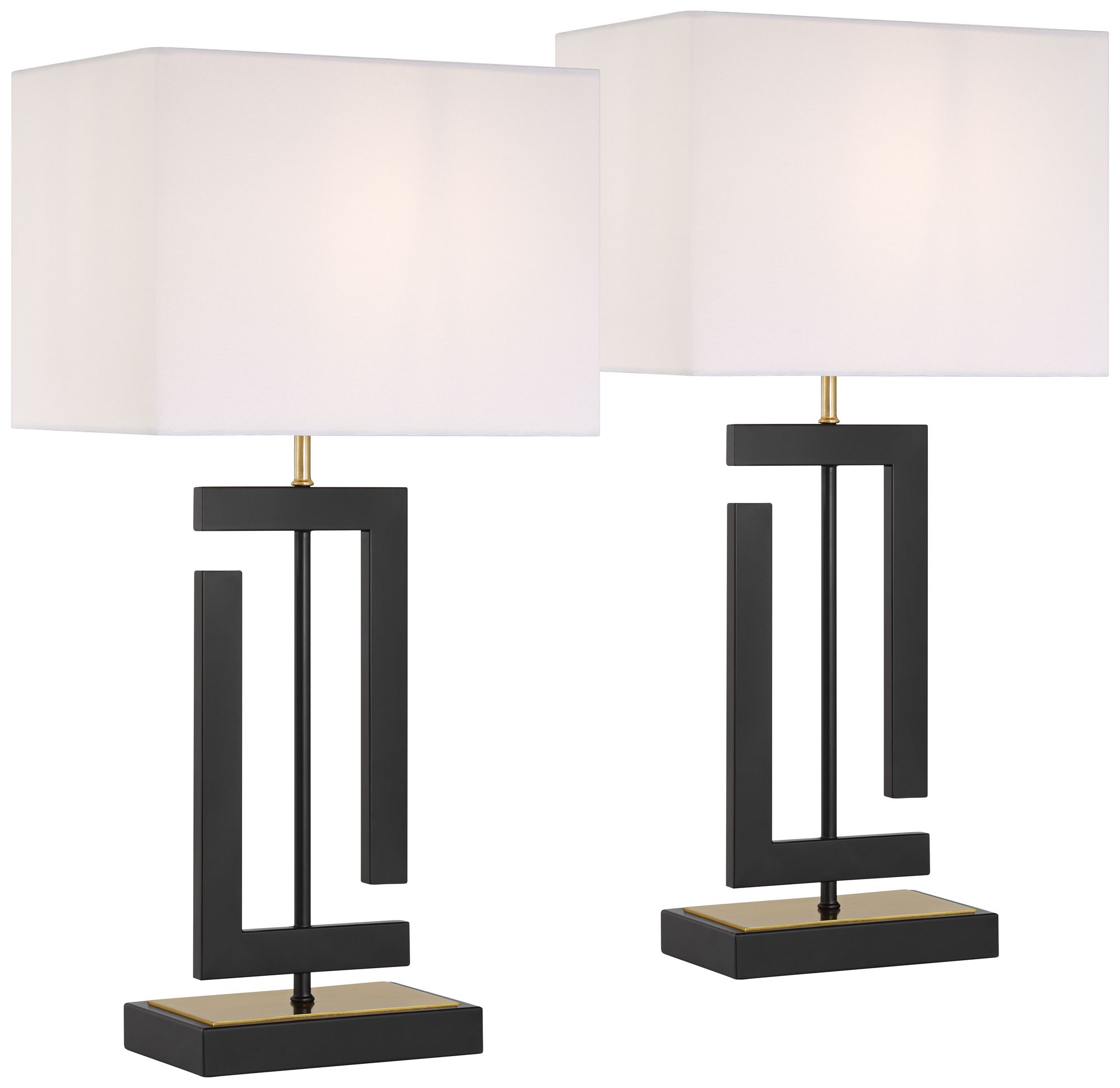 Pellana 26 1/4" High Matte Black and Brass USB Table Lamp Set of 2