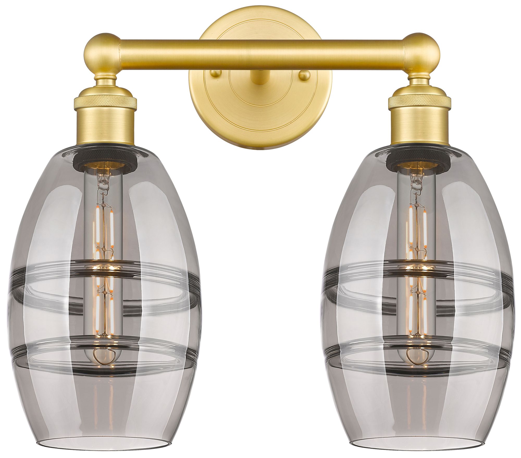 Edison Vaz 14.88" Wide 2 Light Satin Gold Bath Light With Light Smoke