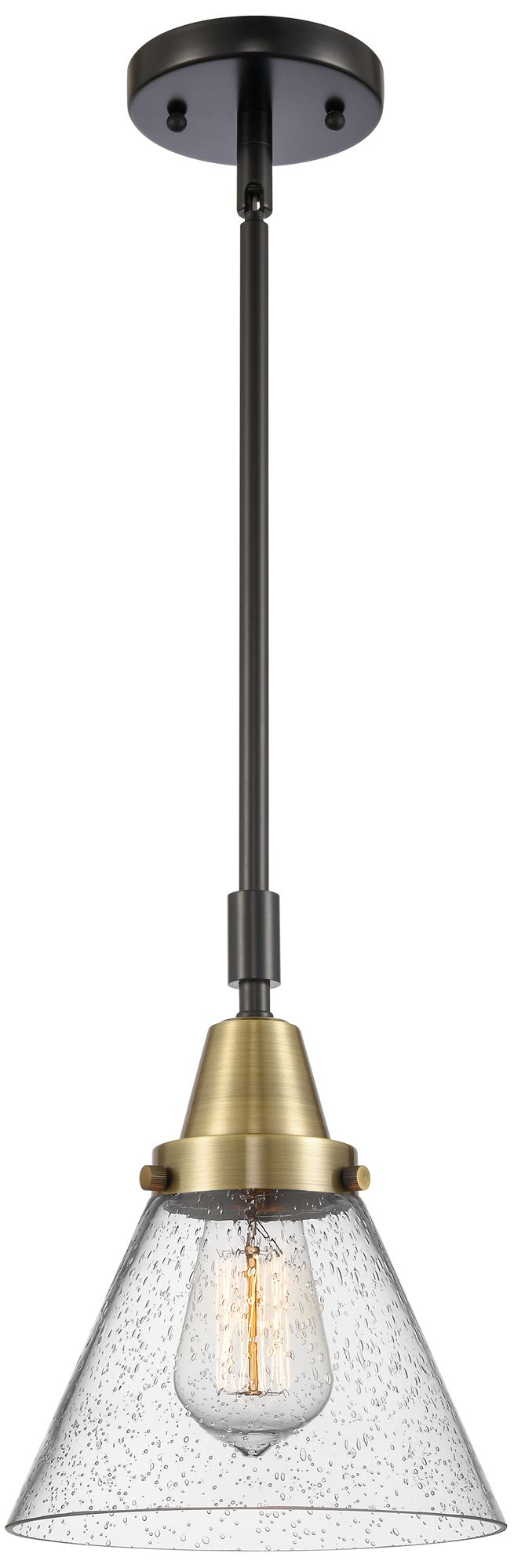 Caden Cone 8" Wide Black Brass Stem Hung Mini Pendant w/ Seedy Shade