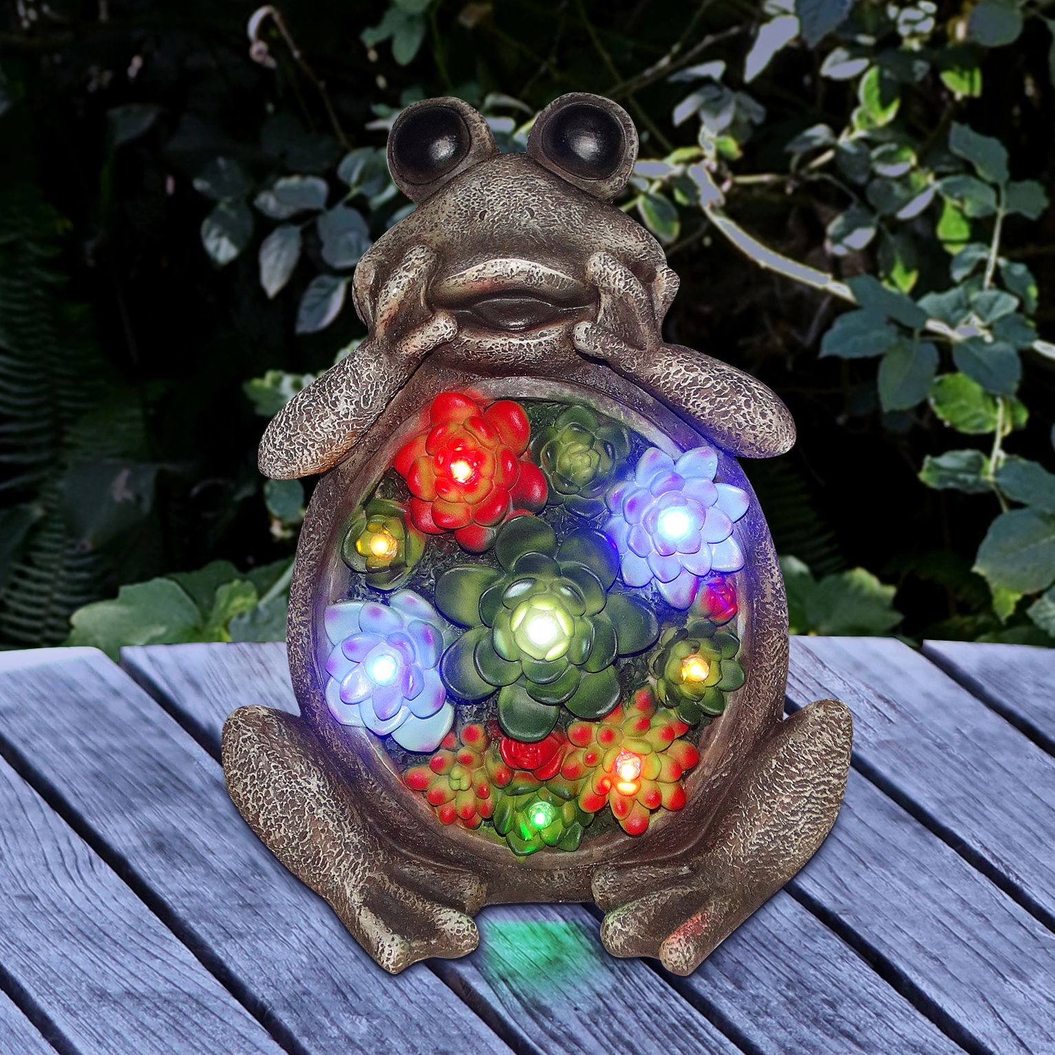 Frog with Flower 12" High Solar LED Outdoor Garden Statue