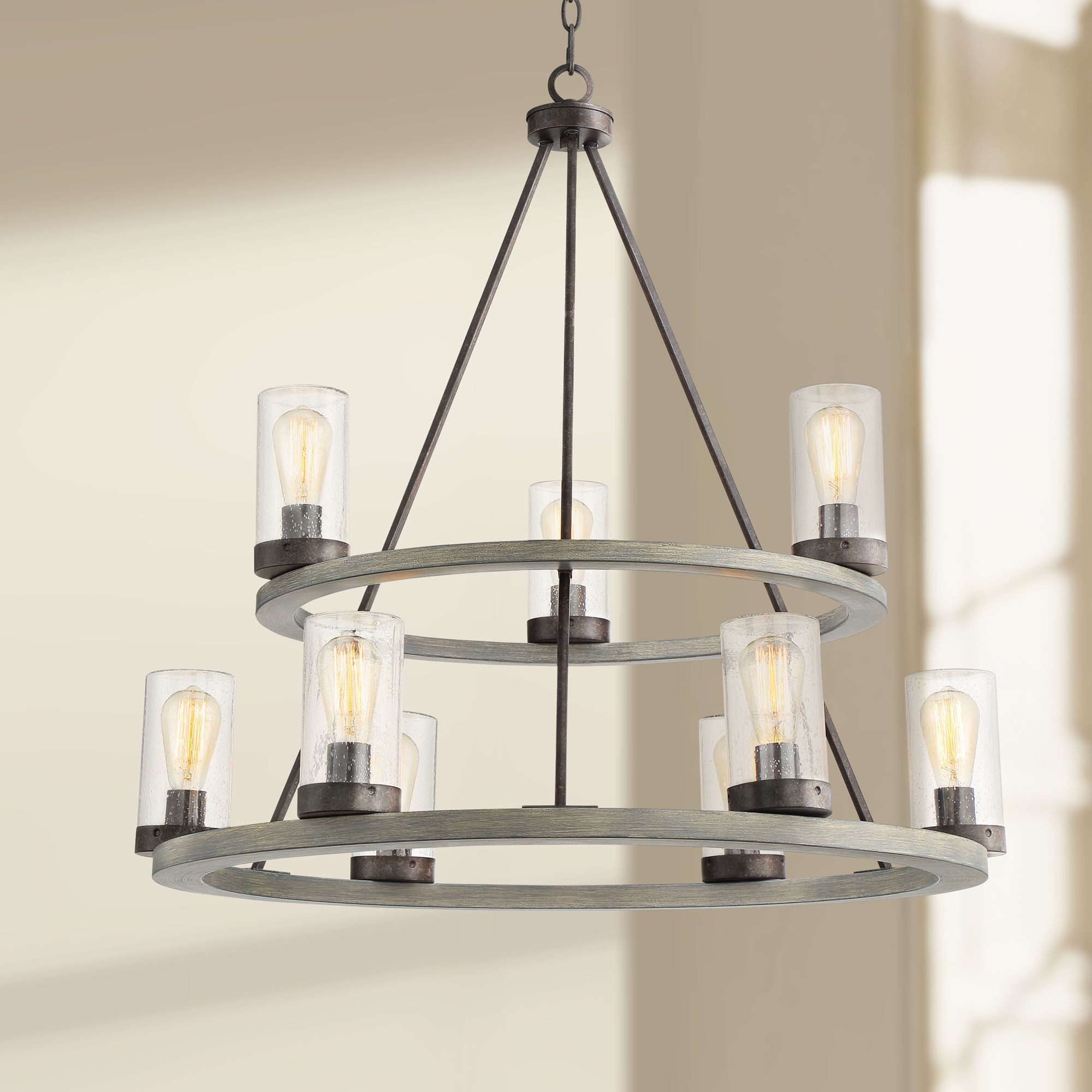 Lillian 34" Wide Gray Wood and Bronze 9-Light Chandelier