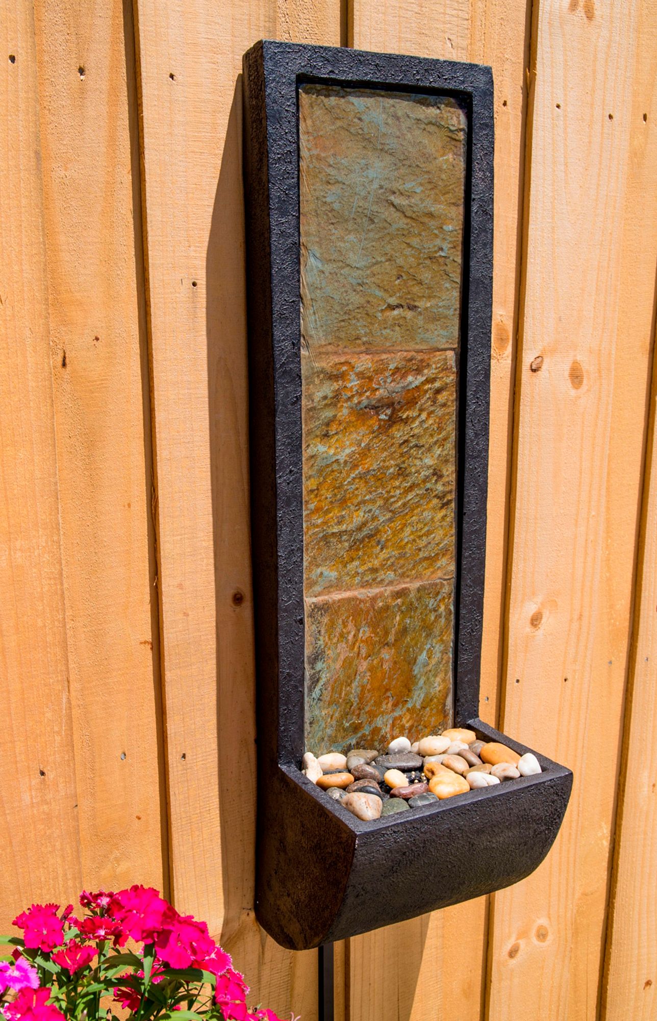 Triptych 37" Natural Slate Modern Wall Fountain with Light