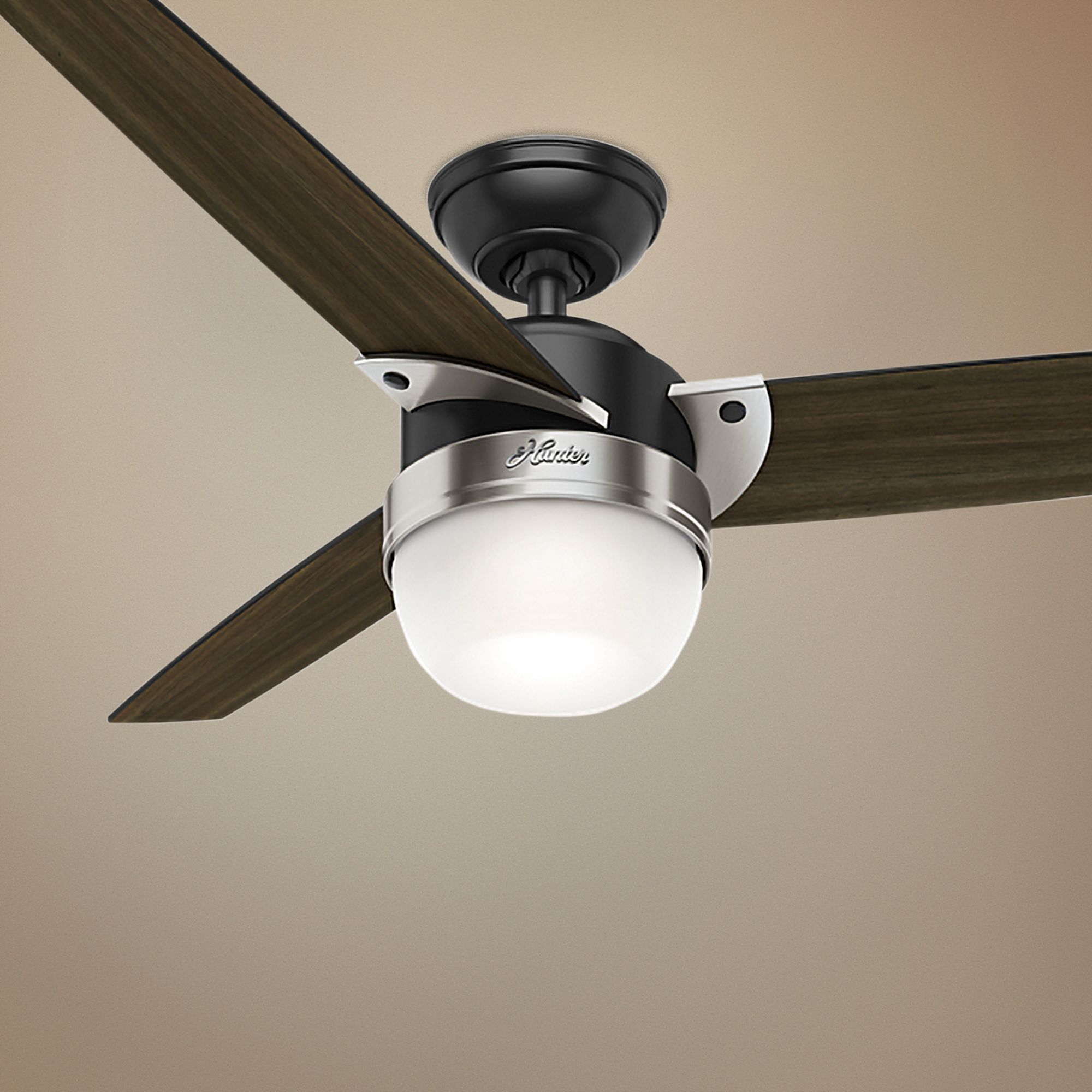 48" Hunter Flare Dark Walnut and Matte Black LED Ceiling Fan