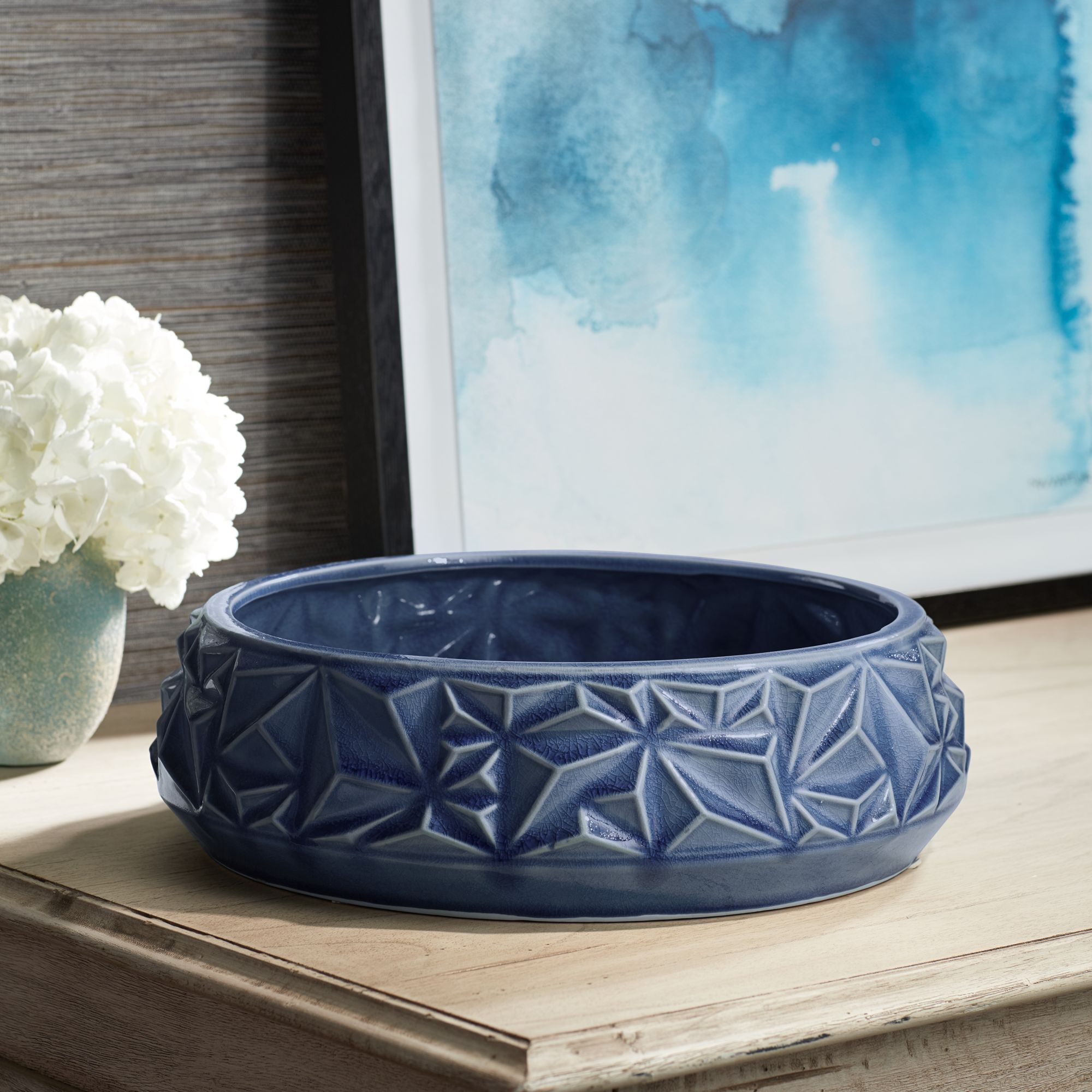 Telus 12 1/2" Wide Dark Blue Ceramic Bowl