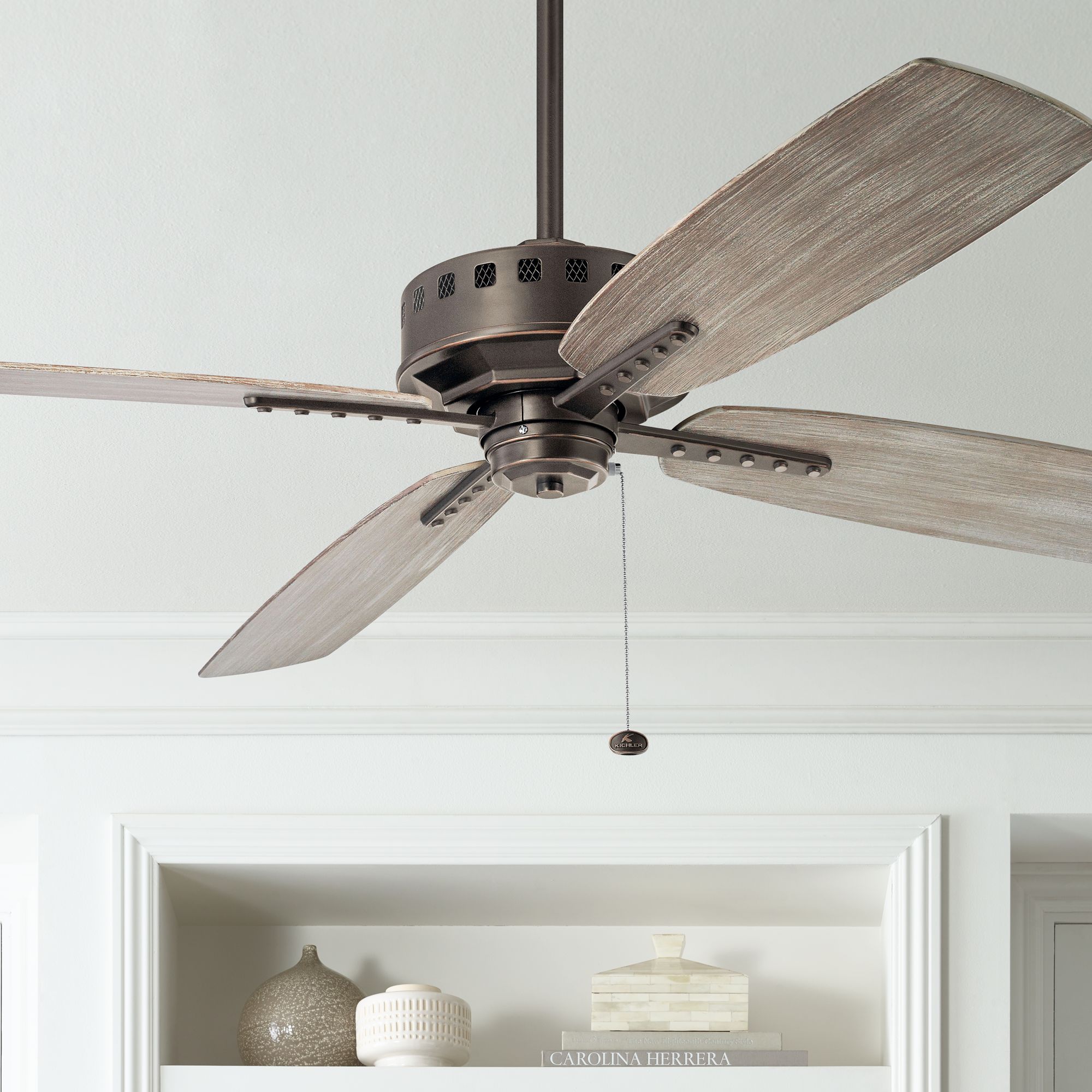 65" Kichler Eads Patio XL Olde Bronze Wet Rated Fan with Pull Chain