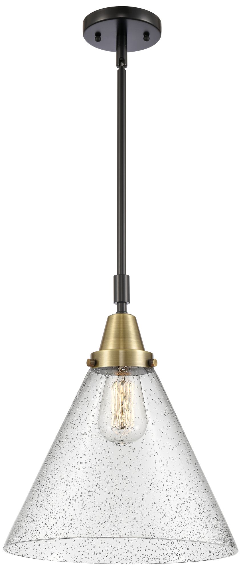 Caden Cone 12" Wide Black Brass Stem Hung Mini Pendant w/ Seedy Shade