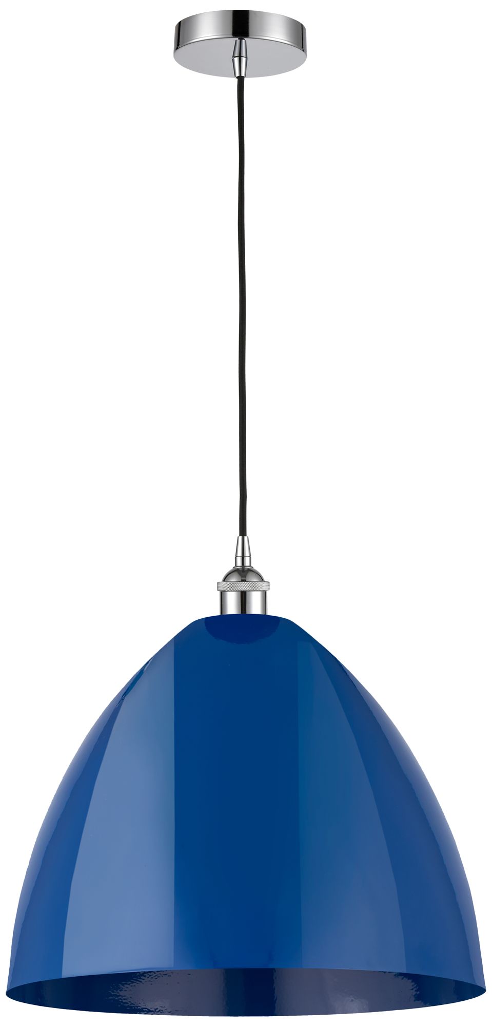 Plymouth Dome 16" Wide Polished Chrome Corded Mini Pendant w/ Blue Sha