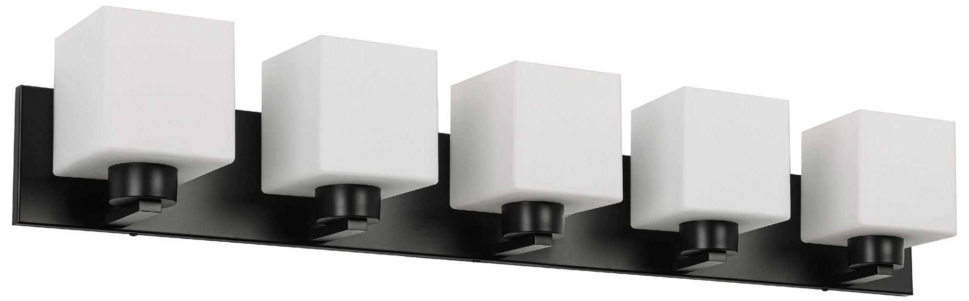 Veda 36.25" Wide 5 Light Matte Black Vanity With White Opal Glass