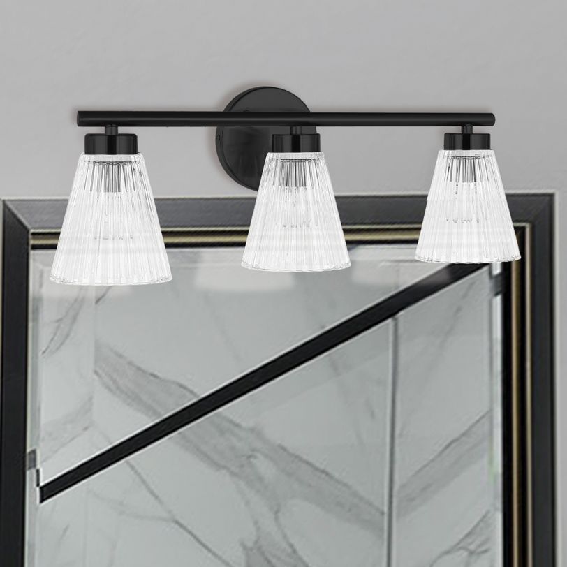 Vienna 21" Wide 3 Light Matte Black Vanity With Clear Ribbed Glass